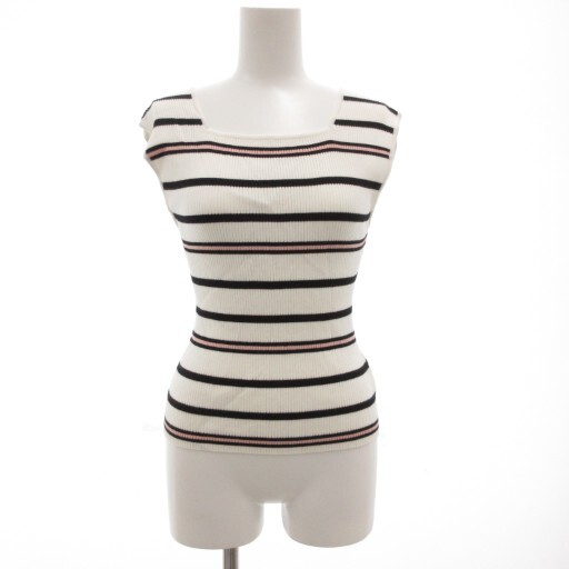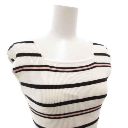 リエンダ rienda 2wayデコルテボーダーKnit TOP タンクトップ カットソー F 白 ホワイト 黒 ブラック 110GAA70-1210 /GV■GY43