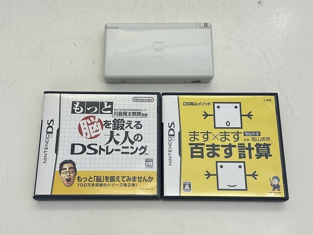 B2320-N44-396 Nintendo ニンテンドー DS Lite USG-001 本体+もっと脳を鍛える大人のDSトレーニング 百ます計算 ソフト 2点 現状品3