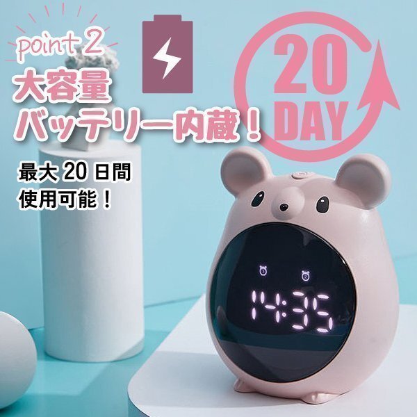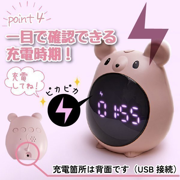 ネズミ 置き時計 アラーム スヌーズ タイマー コードレス 充電式 マウス 置時計 小型 時計 コンパクト 目覚まし時計 キャラクター 動物