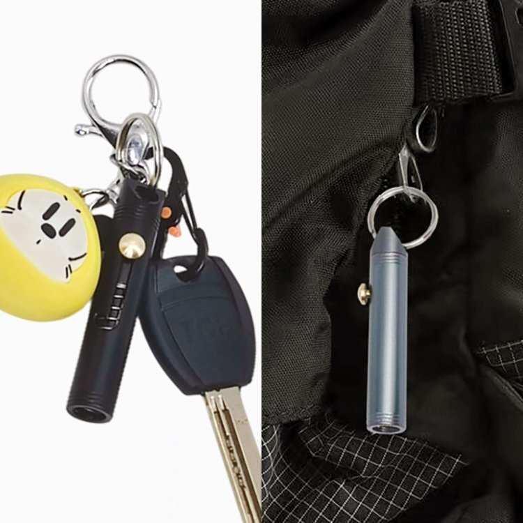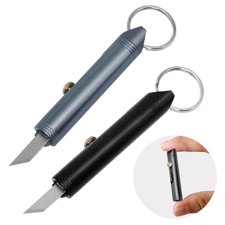 キーリング付きで常備しやすい、全長約58mmのキーホルダー型ミニカッターナイフです。