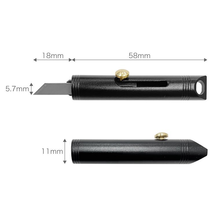◆ミニカッターナイフ 替え刃付属 全長58mm キーリング付 小型ナイフ 金属ボディ ロック機構 カッター刃交換可 携帯便利 常備 キーホルダー型 ペーパーナイフ 小刀【ブラック】 MKS805