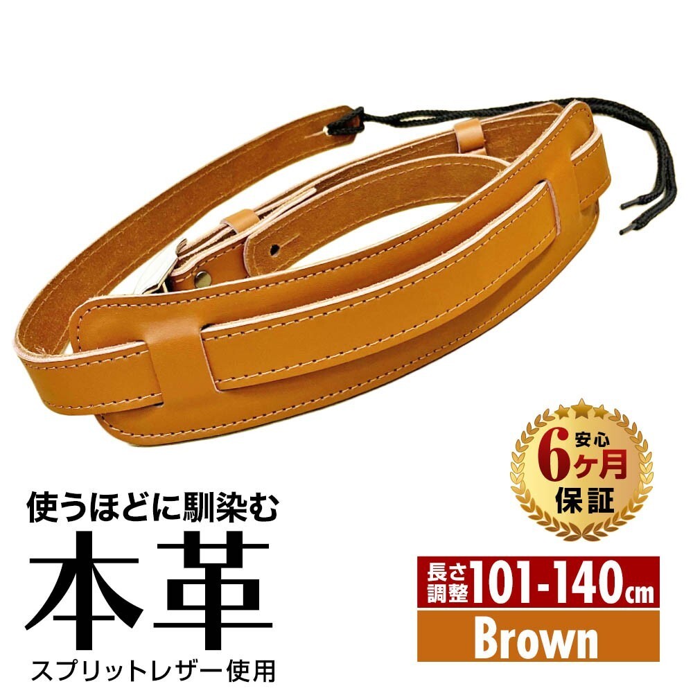 ギター ストラップ 本革 牛革 レザー 111cm-150cm 長さ調整可能 5.8cm幅 ショルダーパッド ベース エレキ アクセサリ 楽器 演奏 ブラウン