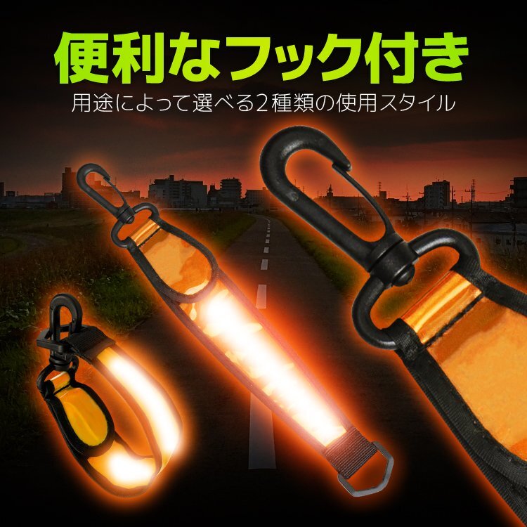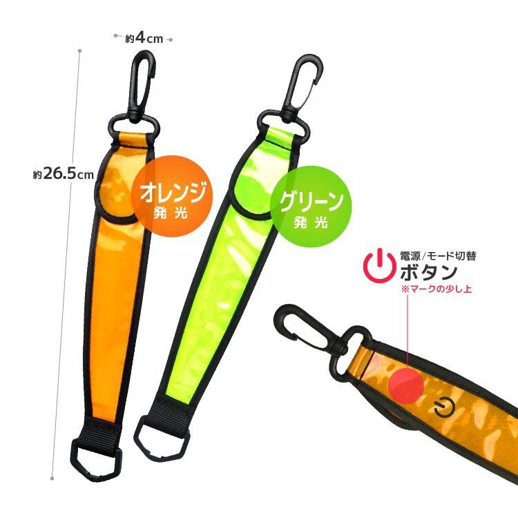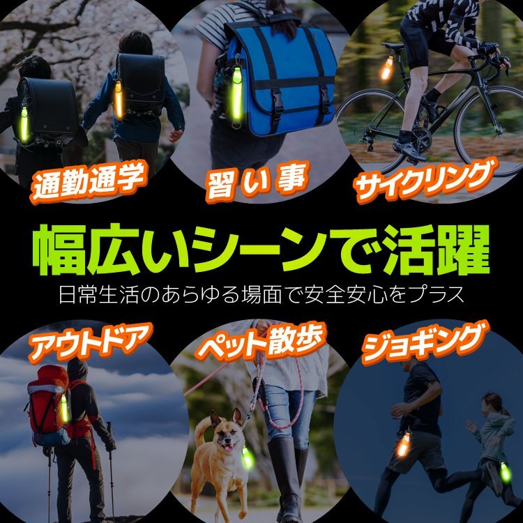 ◆LEDセーフティーライト LED首輪 リュック 自転車 反射 フック付き 発光3モード 光るキーホルダー リフレクターストラップ ジョギング/サイクリング/アウトドアに【グリーン】LKHX004