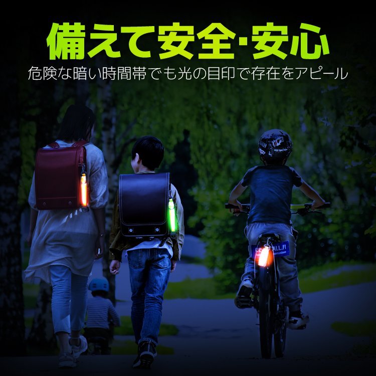 暗い中で光と反射で存在を知らせるLEDセーフティーライトです。