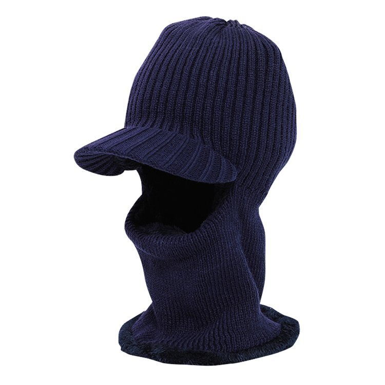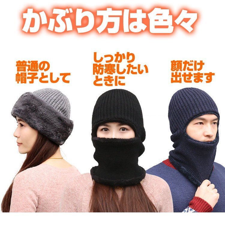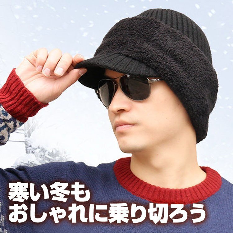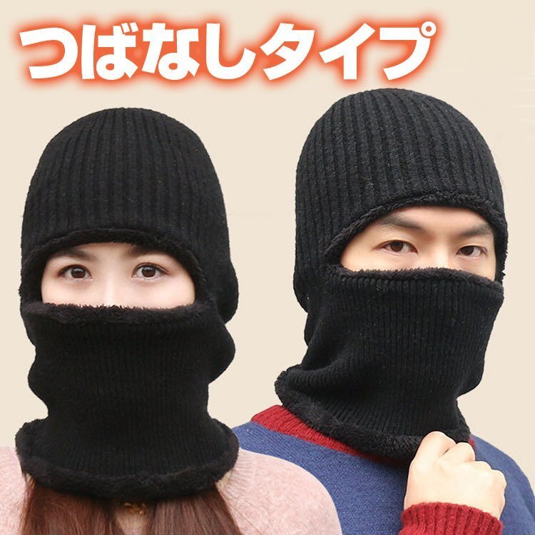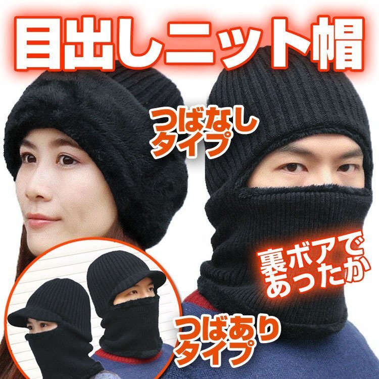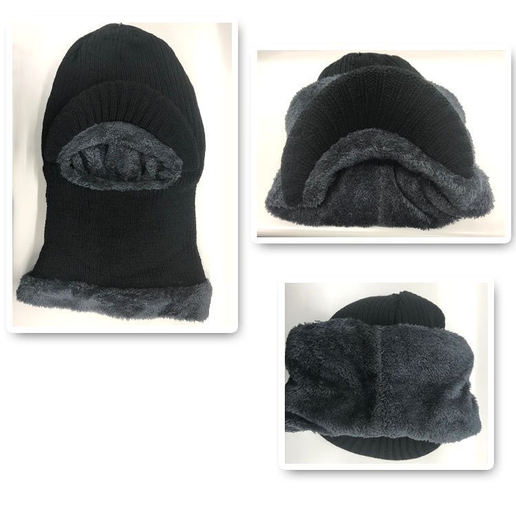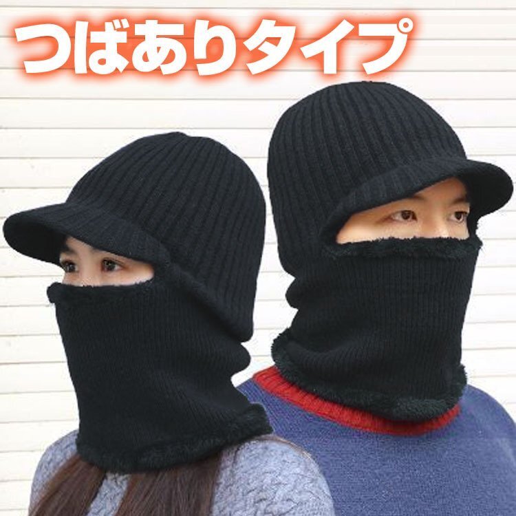 ◆ニット帽 目出し帽 ニットキャップ フェイスマスク ネックウォーマー 裏ボア 帽子 防寒 ブラック ふわふわ 男女兼用 暖かい スキー スノボ 雪国 フリーサイズ SKHT100/つば有黒