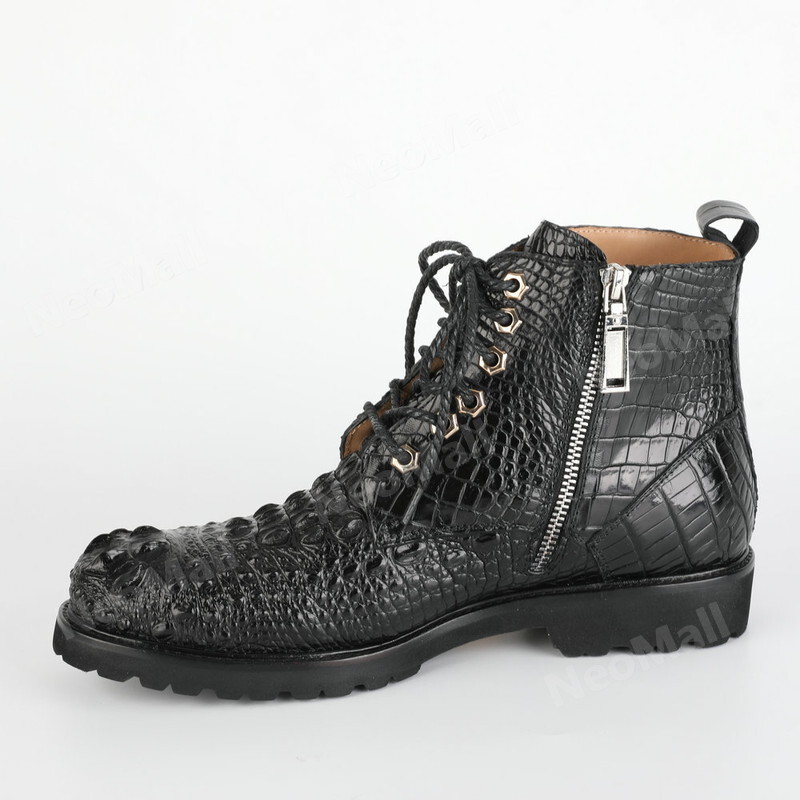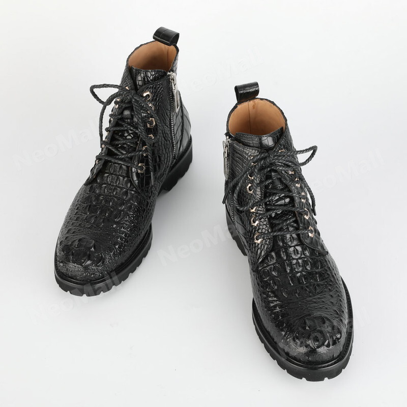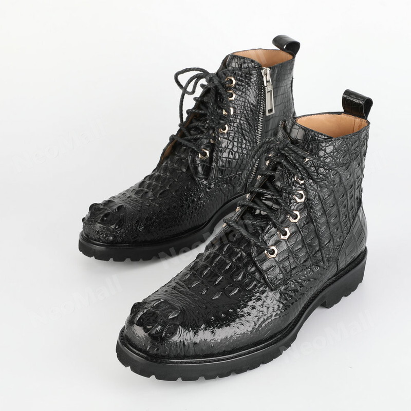 人気のクロコダイルレザー 超貴重 最高級 天然ワニ革 クロコダイル 靴 メンズシューズ 革靴 ブラック 25.5cm 【115】
