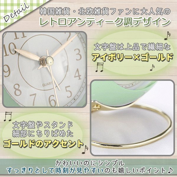 アンティーク 置き時計 グリーン 静音 アラーム ナイトライト アナログ 目覚まし時計 時計 ライト 目覚まし レトロ インテリア 北欧 韓国
