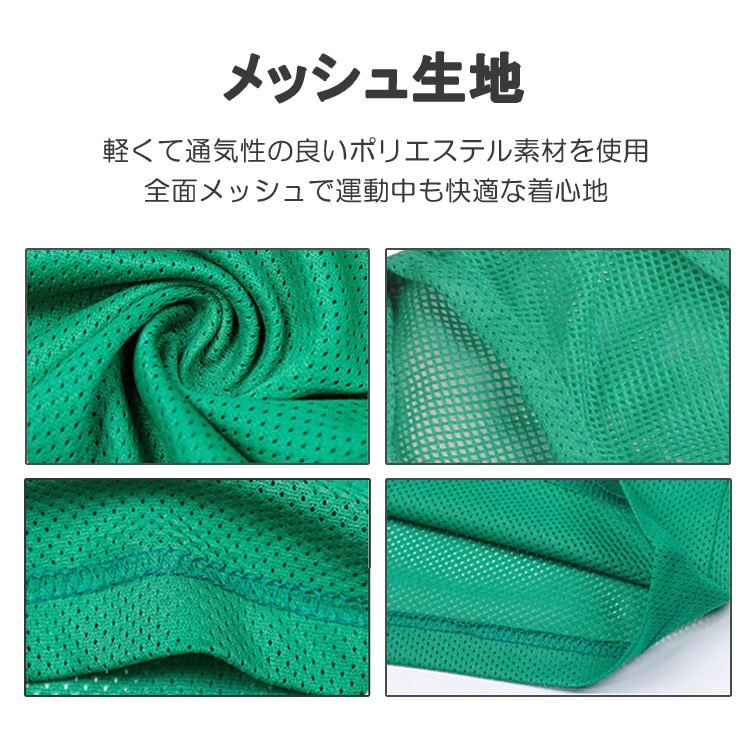 ◆ゼッケンベスト 5枚セット ビブス メッシュ 無地 サッカー バスケ フットサル 運動会 リレー スポーツ イベント ボランティア チーム分け 色分け 子ども用 大人用【大人用グリーン】BIBVS05S