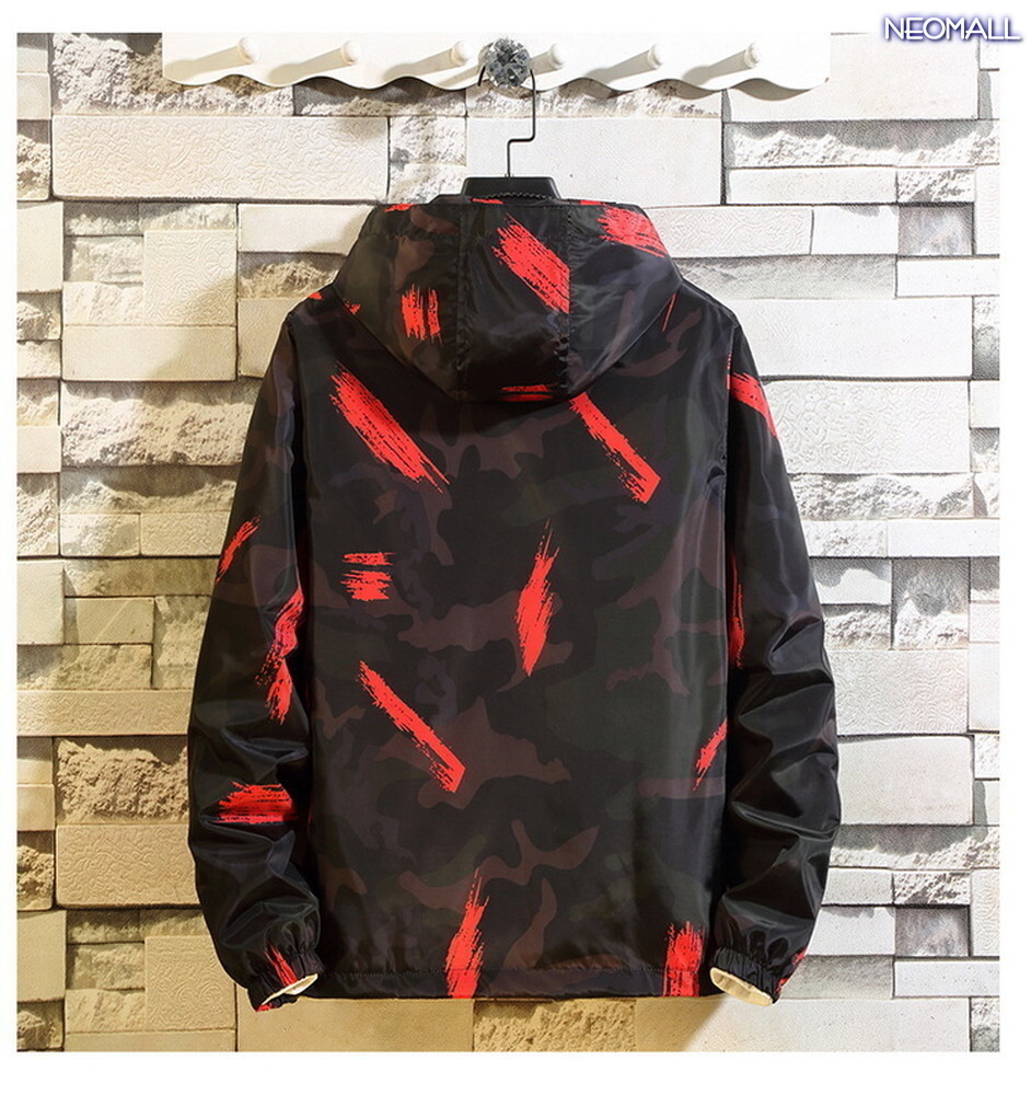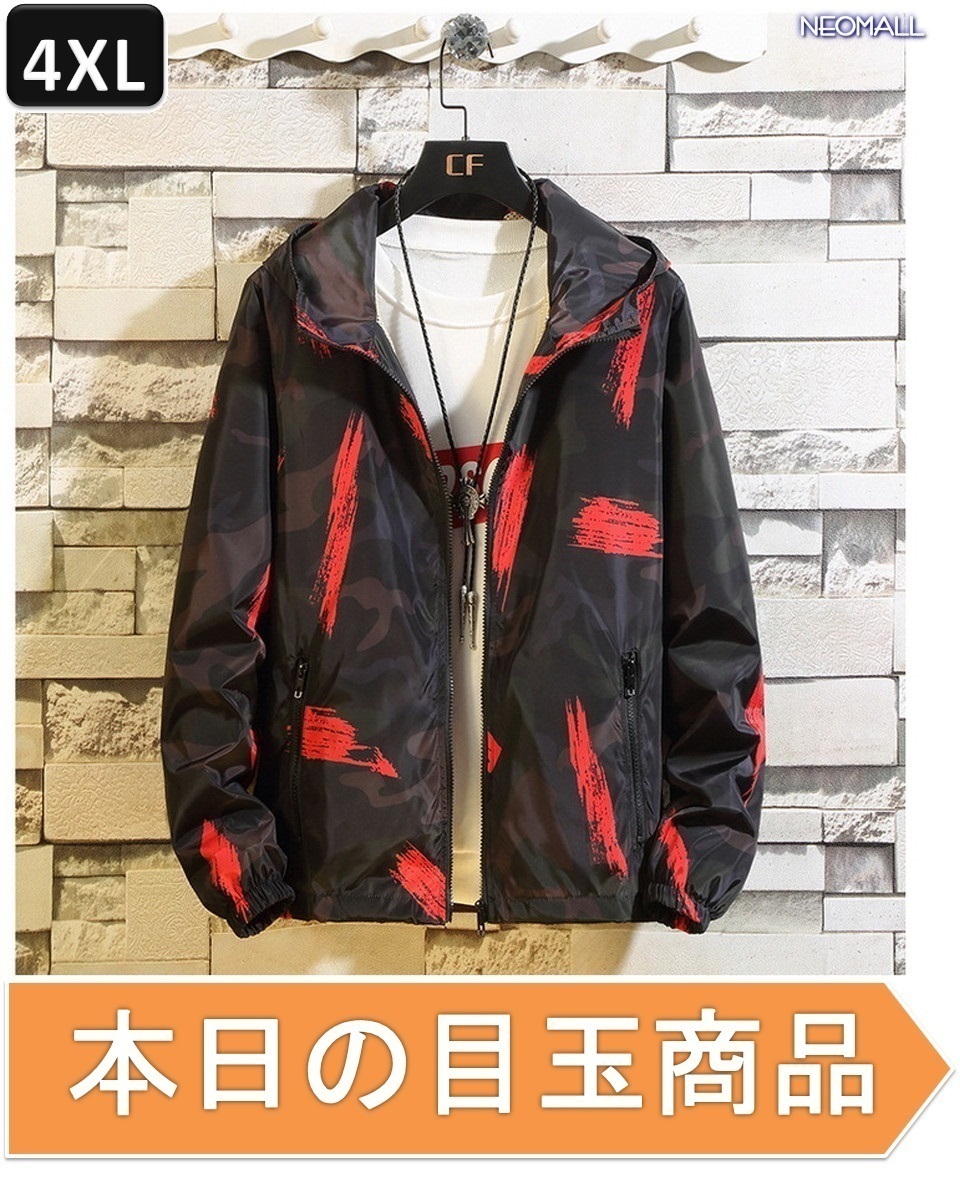 今日の目玉 【411】 ウィンドブレーカー フード付き レッド 4XL メンズ ナイロン カモフラ 柄 アウトドア 防風 軽量 ジャケット