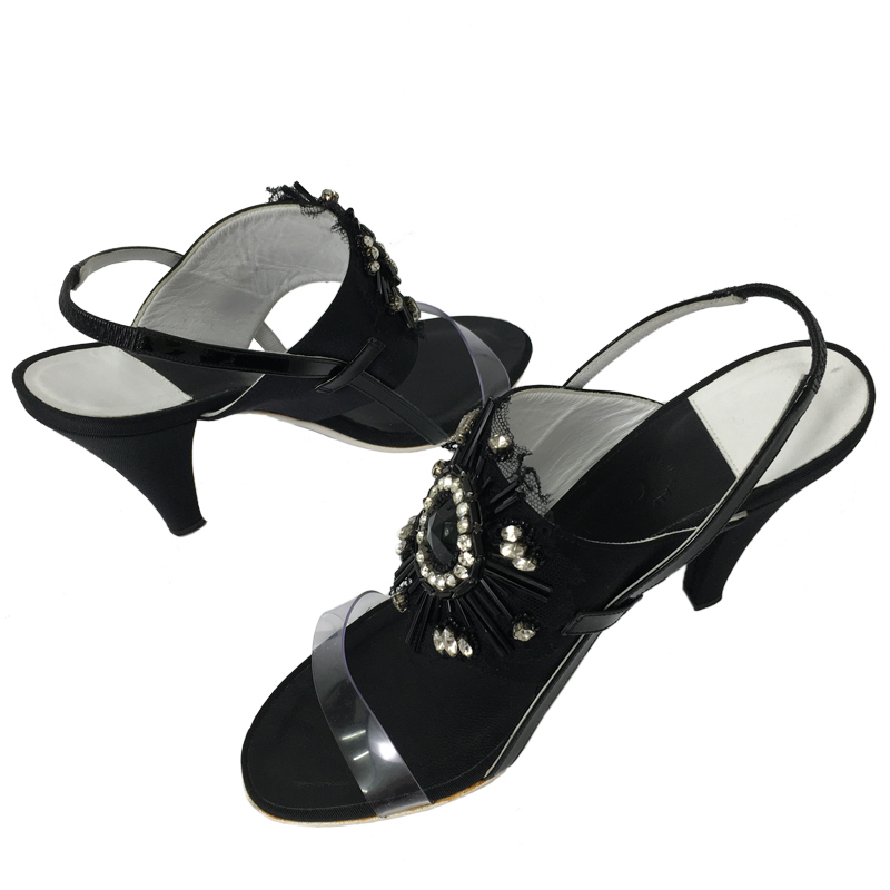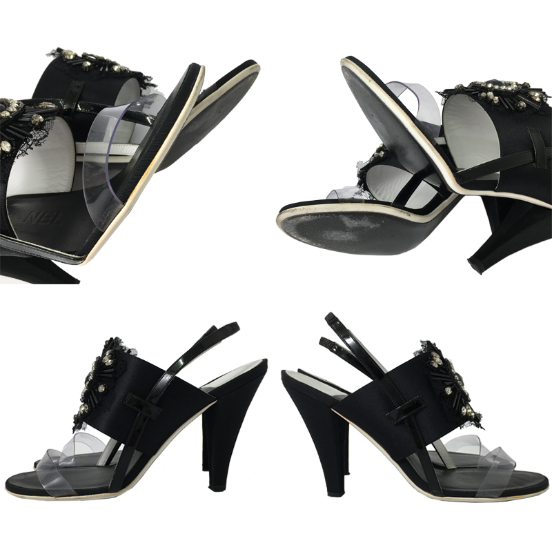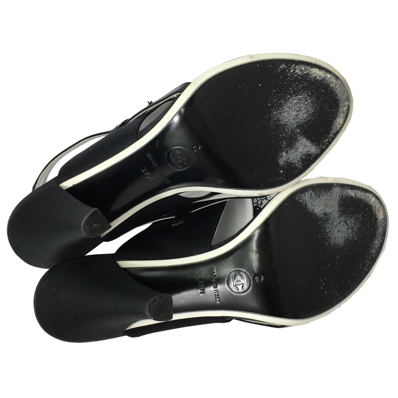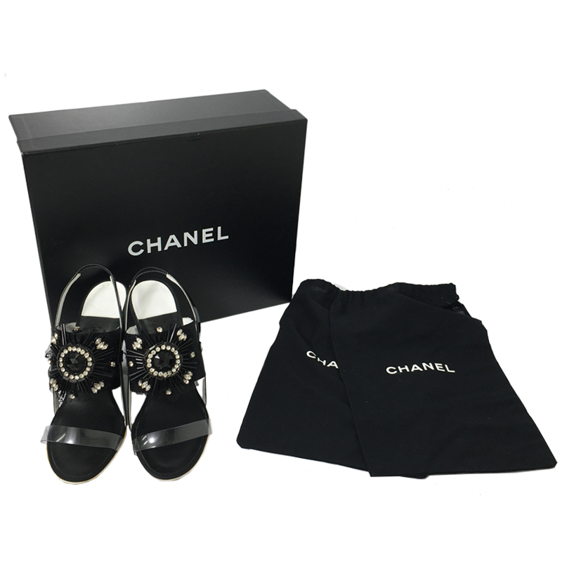 【中古AB】CHANEL シャネル デザインサンダル ミュール レディース サイズ37_1/2 ブラック (辻屋質店A1097)** |