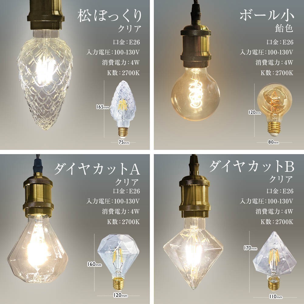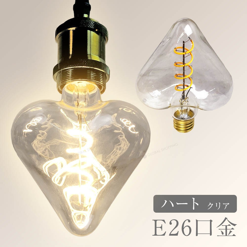 LED電球 レトロ インテリア おしゃれ E26 電球 LED 照明 非調光 省エネ 間接照明 アンティーク照明 暖温色 2700k ハート クリア
