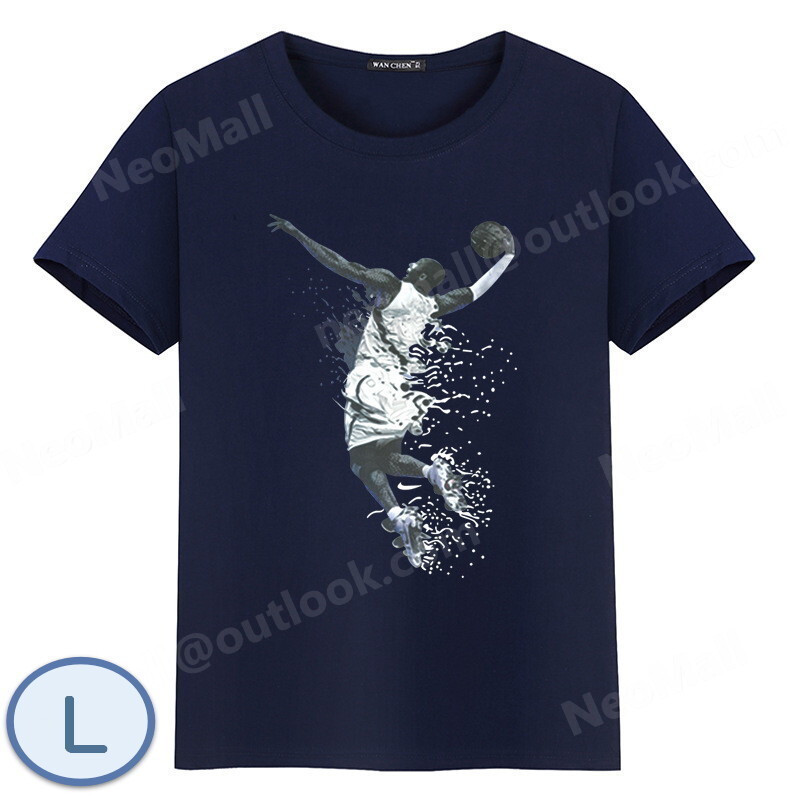 夏にピッタリ ☆ 丸首 半袖 Tシャツ【069】 ネイビー Lサイズ トップス シャツ シンプル イラスト プリント 春夏