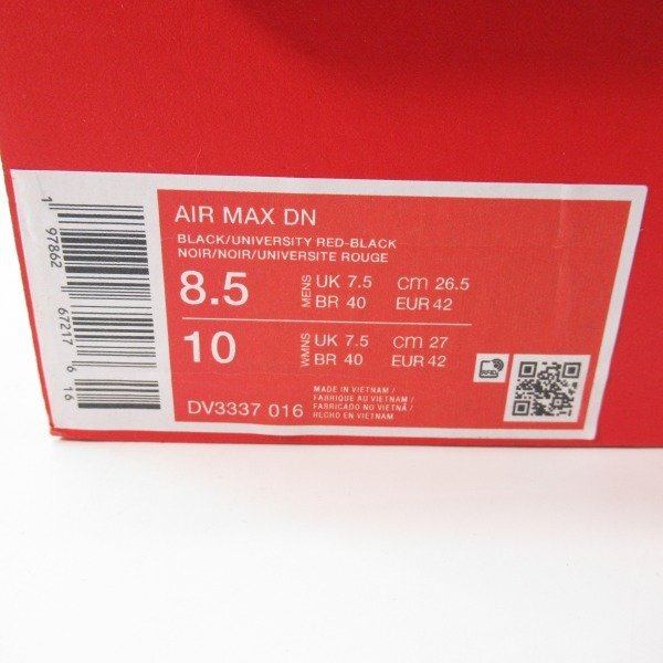 | 【未使用】NIKE/ナイキ AIR MAX DN "Black/Metallic Silver/University Red"/エア マックス DN DV3337-016/26.5 /080 | |||||||||||||||||||||||||