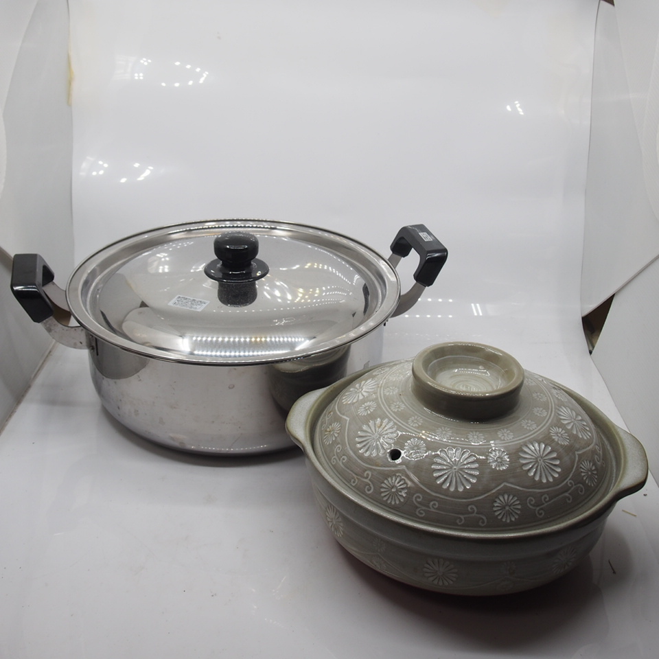 径25cm 土鍋 径30cm ステンレス鍋 2点まとめ