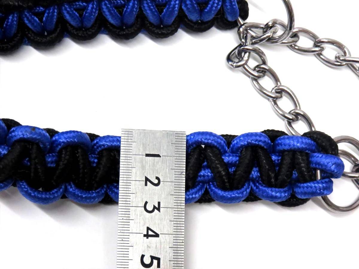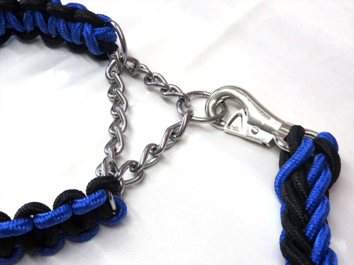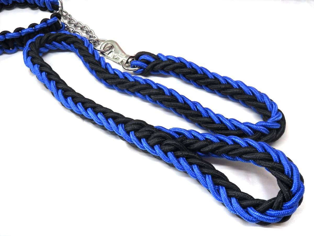 ハーフチョーク 首輪 リードセット M 青 黒 首回30~40cm 幅2.5 リード長さ110 幅2 中型犬 大型犬 ブルー 散歩 しつけ トレーニング 編込み