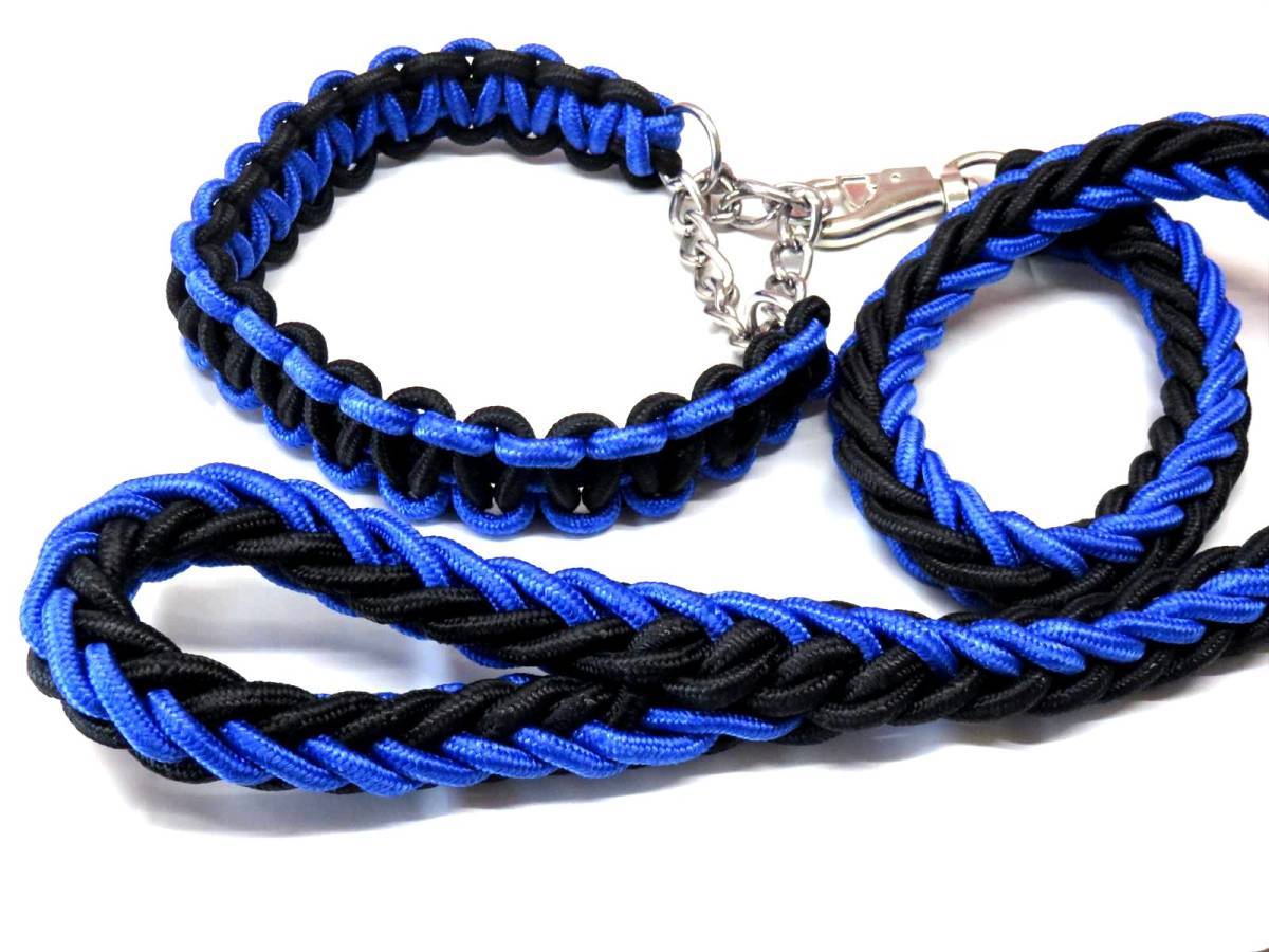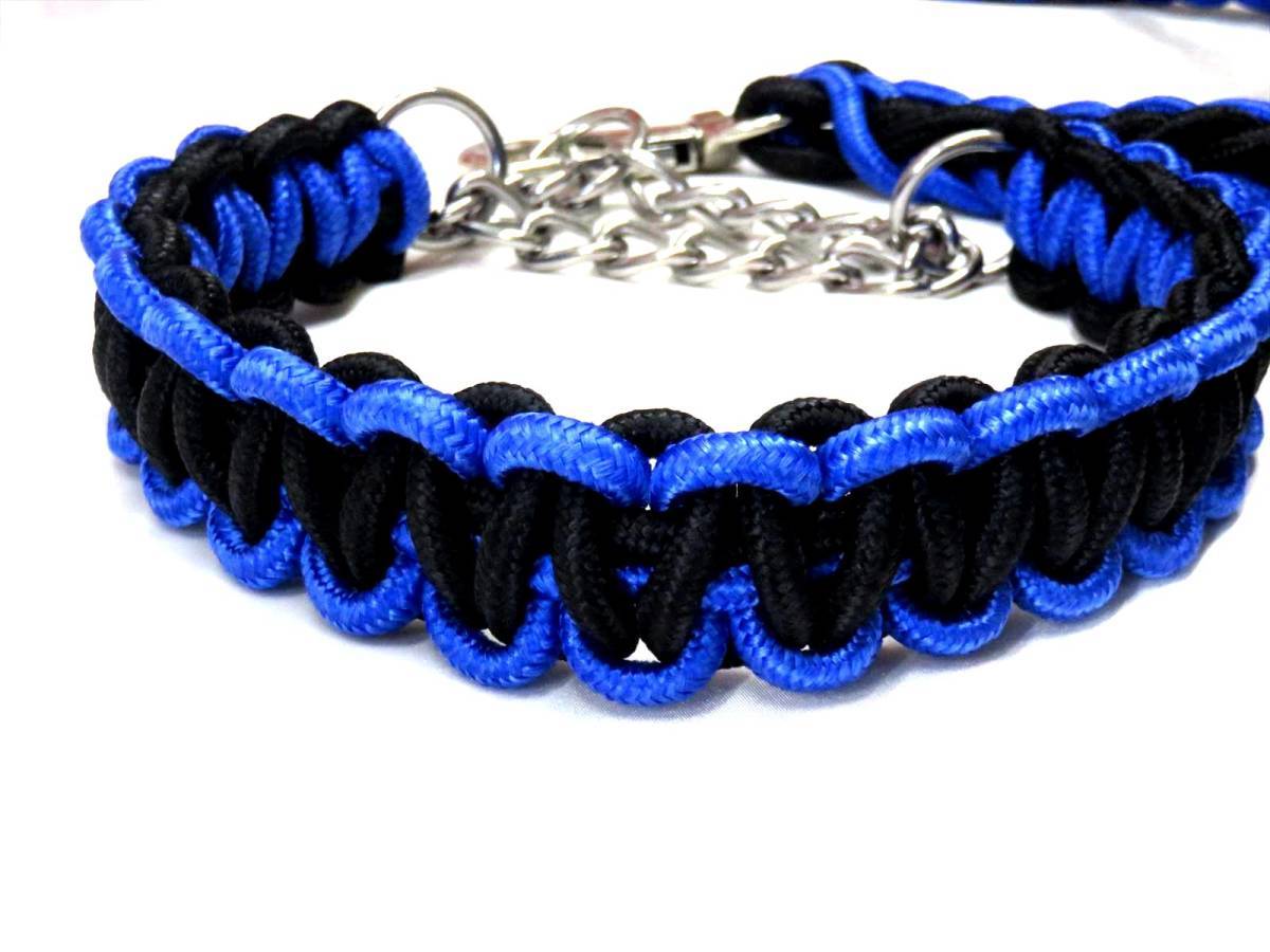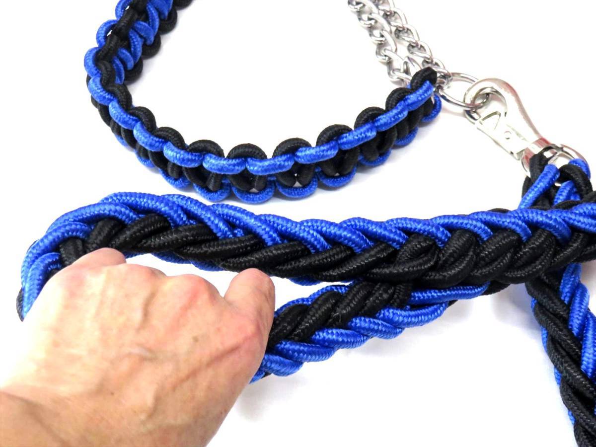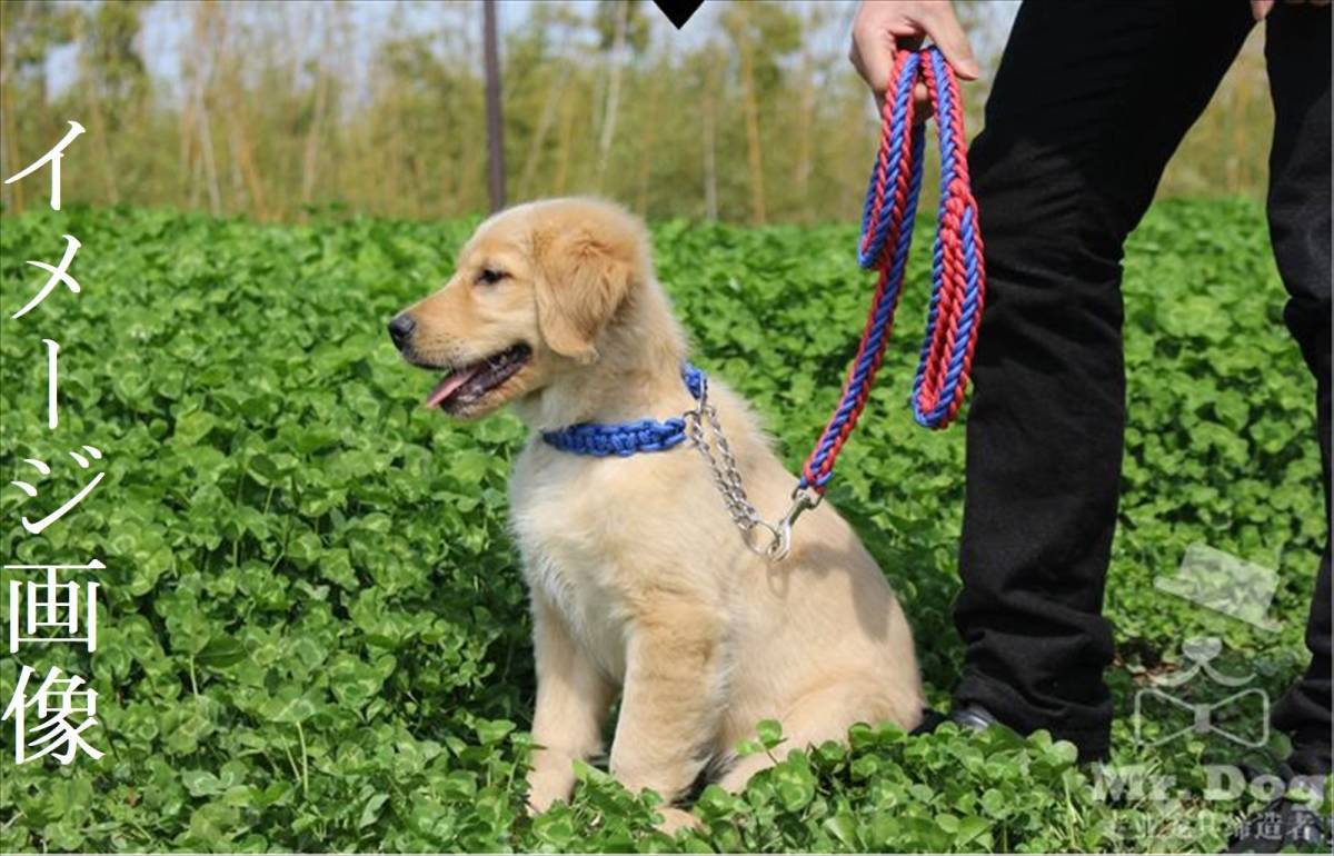 ハーフチョーク 首輪 リードセット M 青 黒 首回30~40cm 幅2.5 リード長さ110 幅2 中型犬 大型犬 ブルー 散歩 しつけ トレーニング 編込み