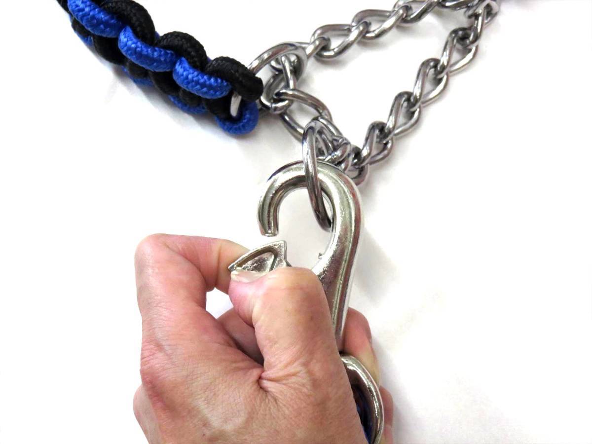 チェーンの動きがシグナルになるので、問題行動後にぎゅーぎゅー締めて苦しくさせることには全く意味がありません。