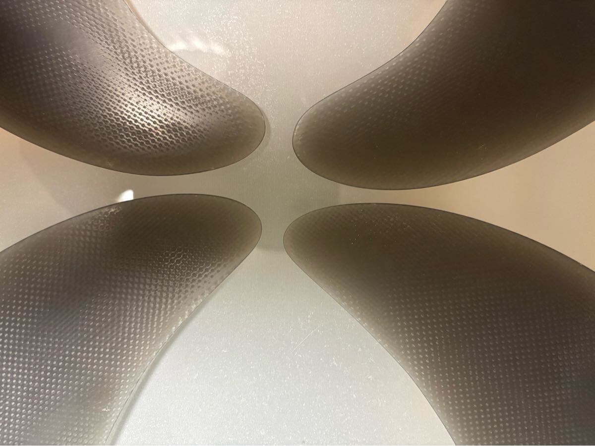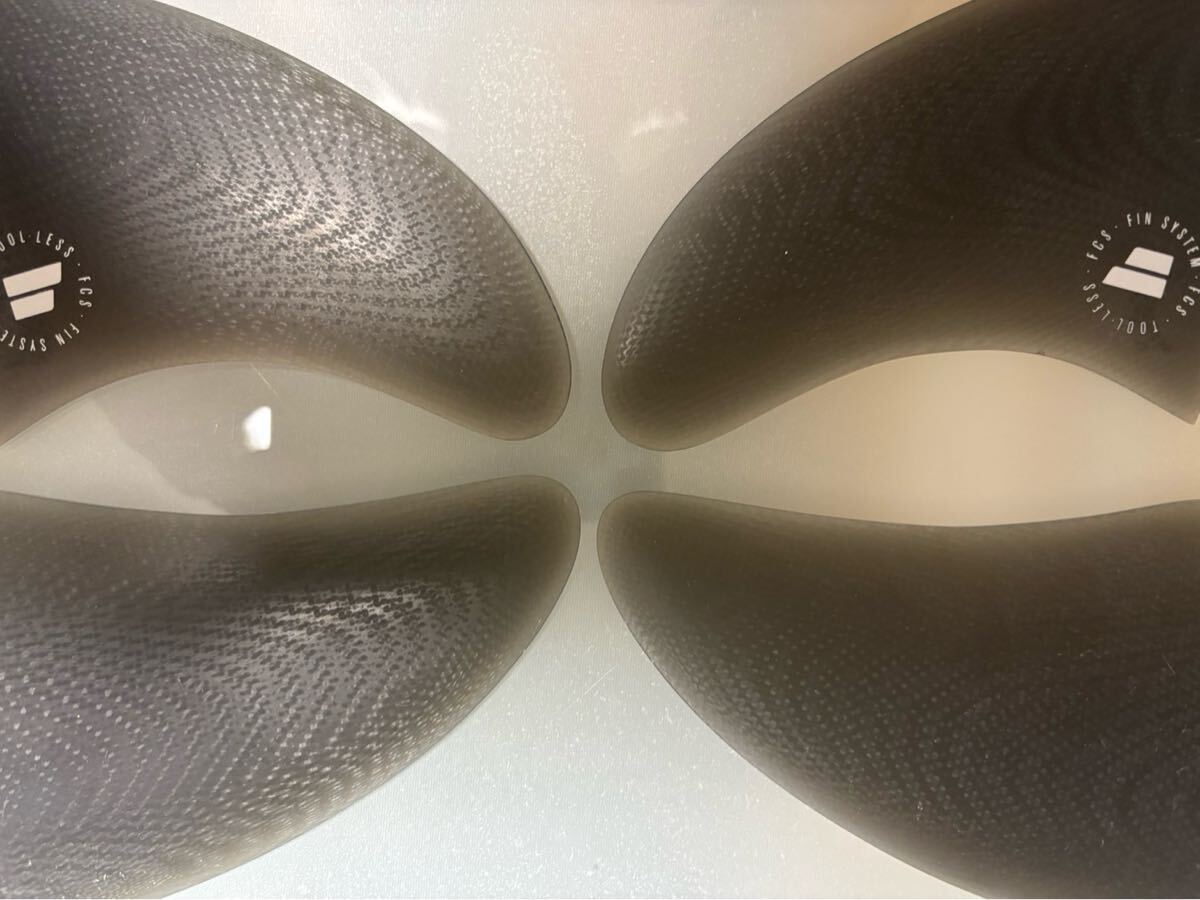 フィン面積が大きく特にリアフィンがキールフィンに近い形状をしていることが特徴で、ドライブ性能とホールド感が向上し、波のフェイスにしっかりと食い付きます。
