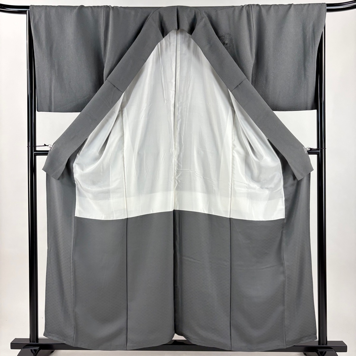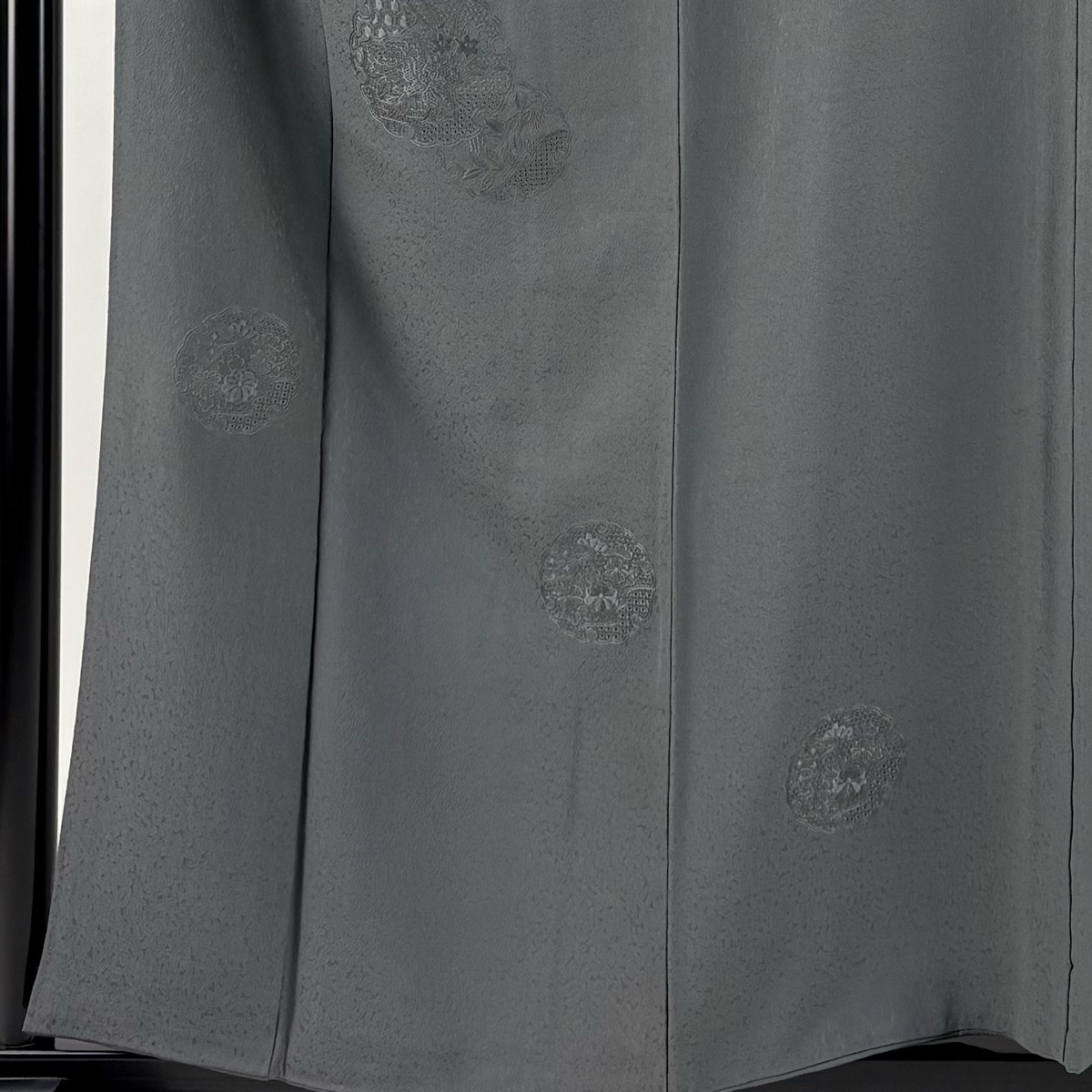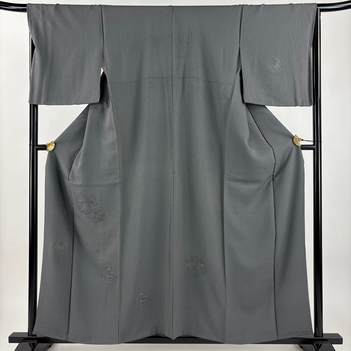 | 付下げ 秀品 草木染 雪輪 草花 刺繍 灰色 袷 身丈158.5 裄丈67 M 正絹 【中古】 |