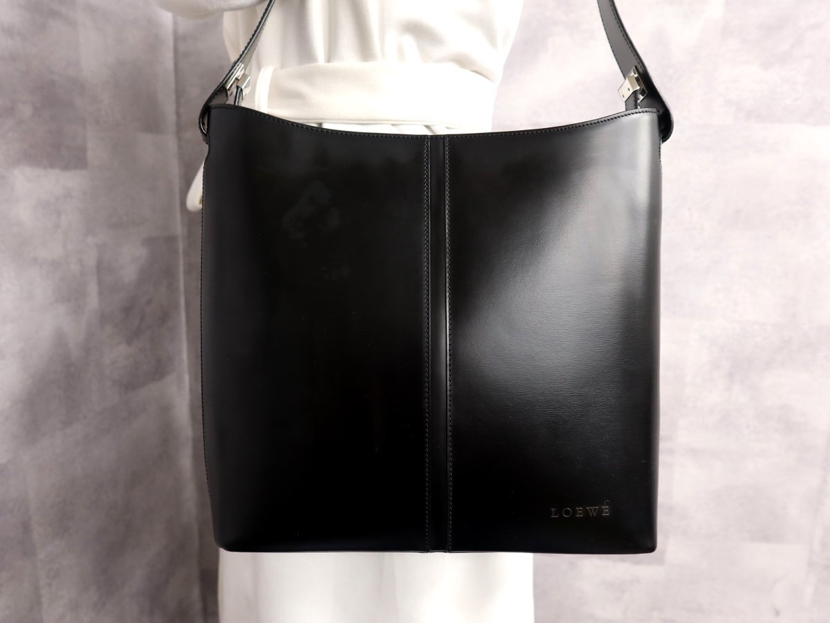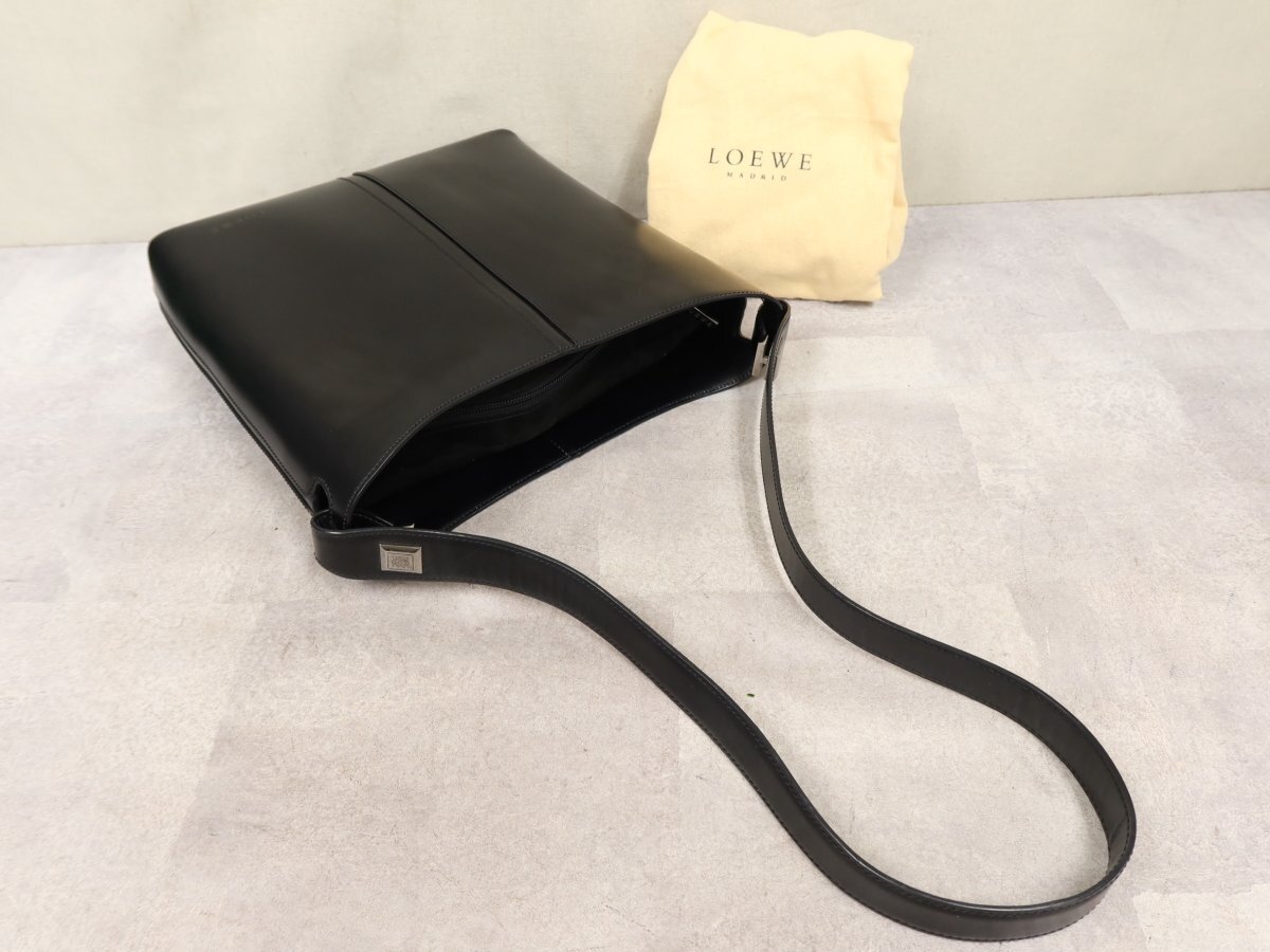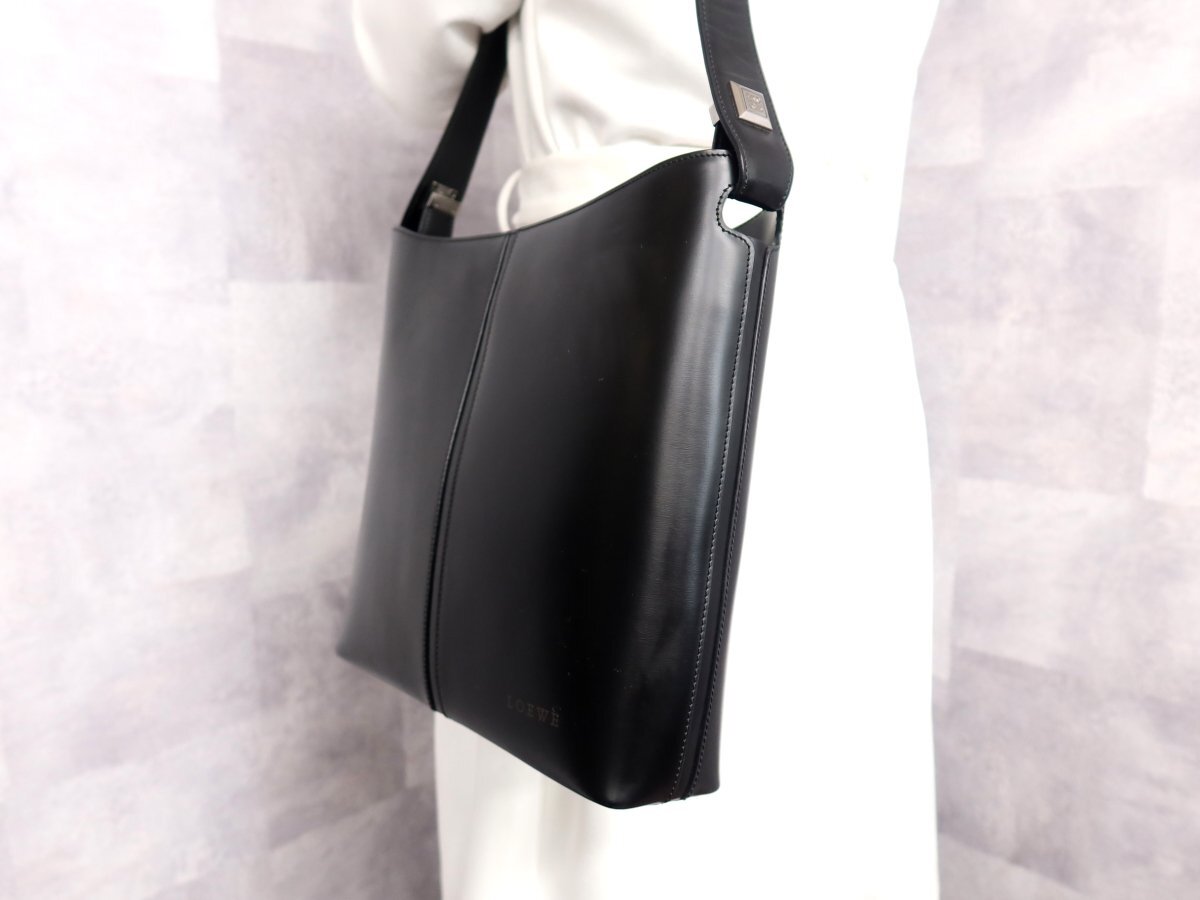 ●超美品●LOEWE ロエベ●ロゴ型押し●カーフ レザー 本革●ショルダー バッグ●黒●シルバー金具●B5 収納●書類 かばん●Js62666