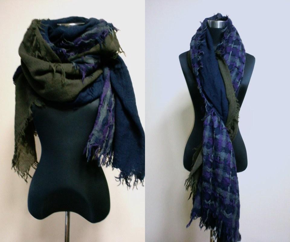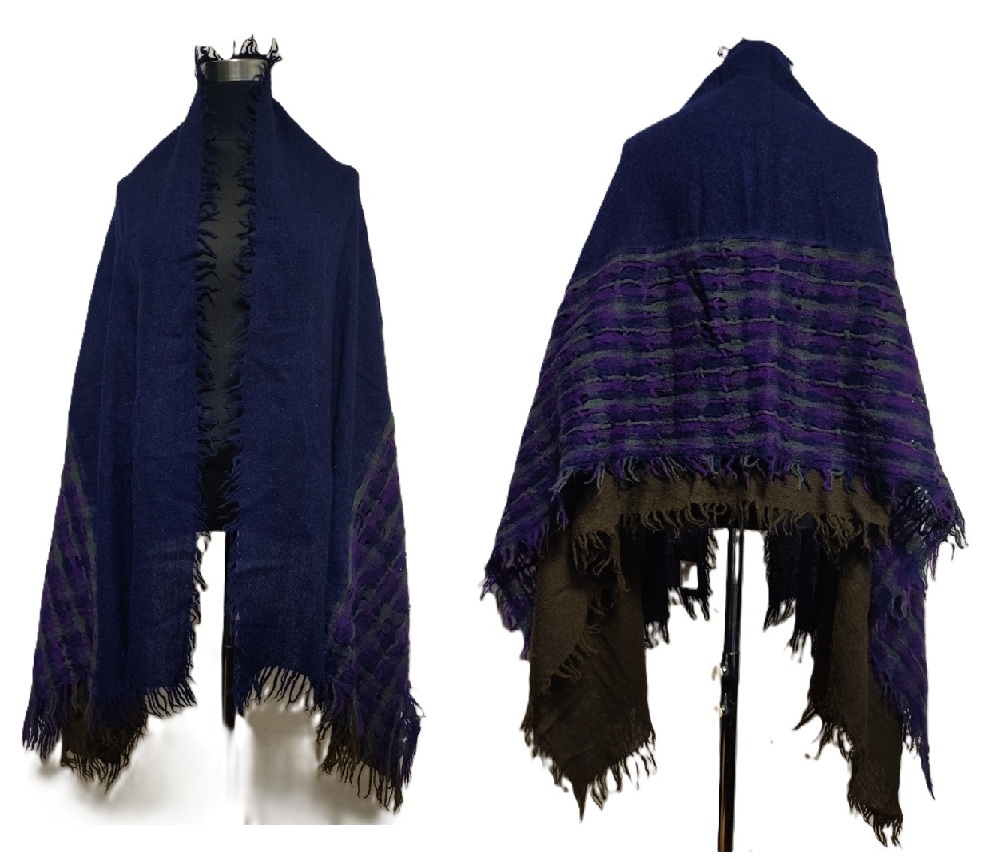 ご覧頂きありがとうございます。ワイズの縮絨素材/三枚接ぎストール(委託品)になります。素材・配色を変え毎年販売されている人気商品です。色は紺×カーキ×紺・紫・グレーのチェック、素材はウール100%(縮絨)、サイズは34cm(紺・カーキ)・28cm(チェック)×171cm(フリンジ含まず)、フリンジ5cm位です。素人採寸との事をご了承下さい。毛羽立ち・繊維の付着等使用感はございますがまだまだご使用頂けます。ユーズドとの事をご理解頂ける方のみご入札願います。ノークレーム、ノーリターンでお願い致します。発送はヤマト運輸になります。ご連絡は2日以内、お支払いは3日以内でお願い致します。なお出品商品と無関係なご質問、画像転用、値引き交渉はご遠慮下さい。