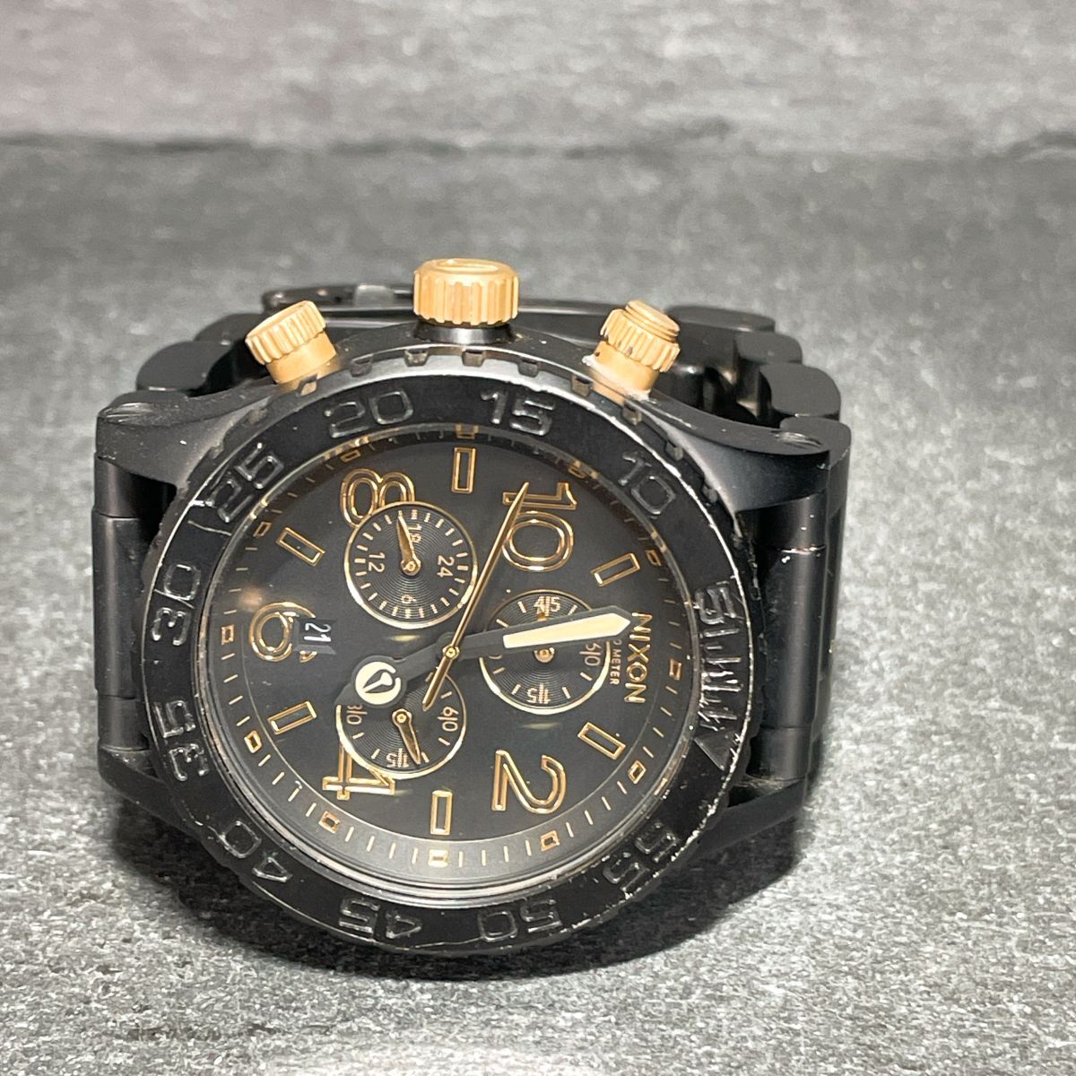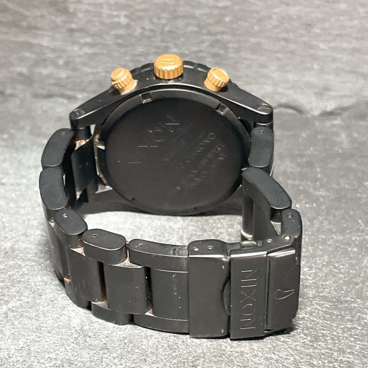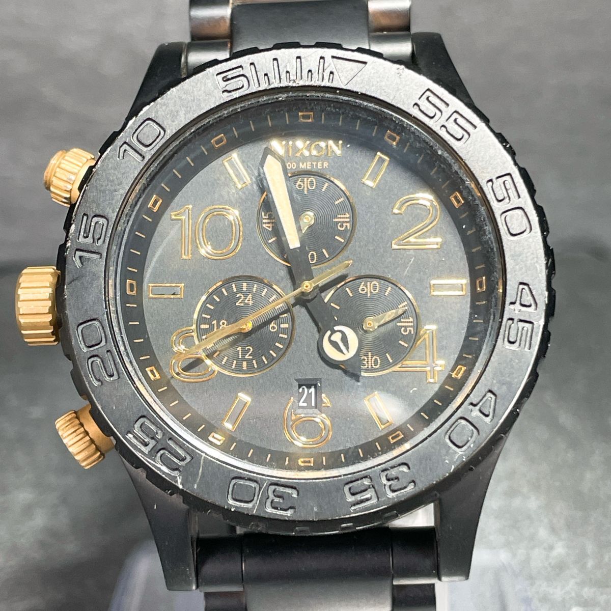 美品 NIXON ニクソン THE 42-20 腕時計 アナログ クオーツ カレンダー メタルバンド ブラック ゴールド ラウンド ステンレススチール