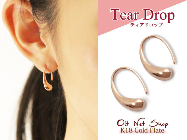 ピアス レディース ドロップ 雫 フック ピンクゴールド 18金 18kコーティング シンプル しずく 女性 / K18GP ティアドロップフックピアス