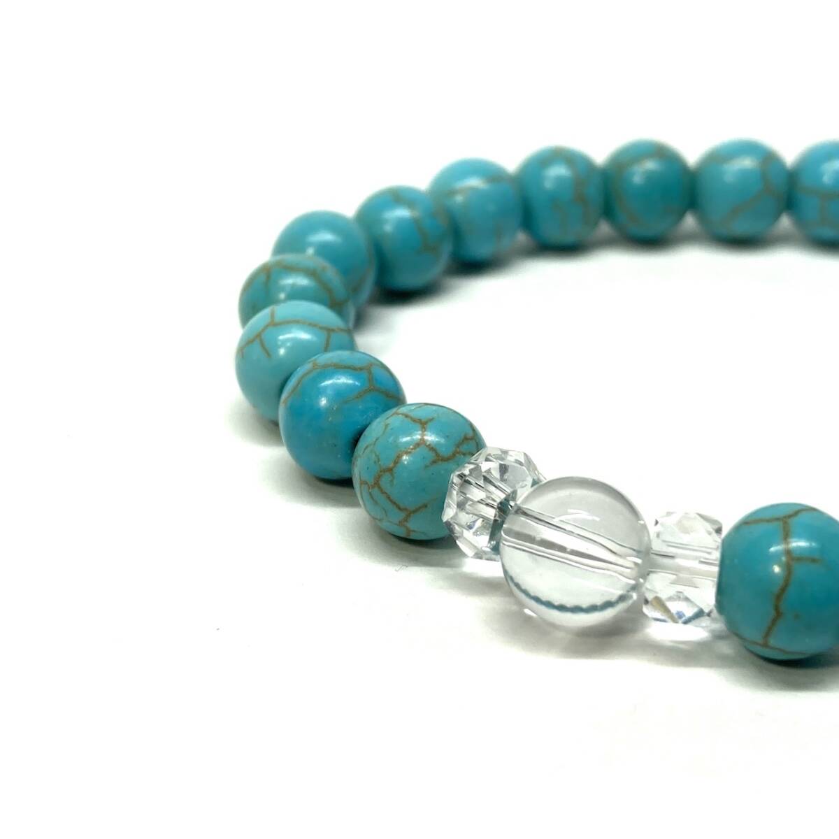 水晶&ターコイズ ブレスレット パワーストーン レディース 女性 金運 恋愛 開運 数珠ブレス お守り