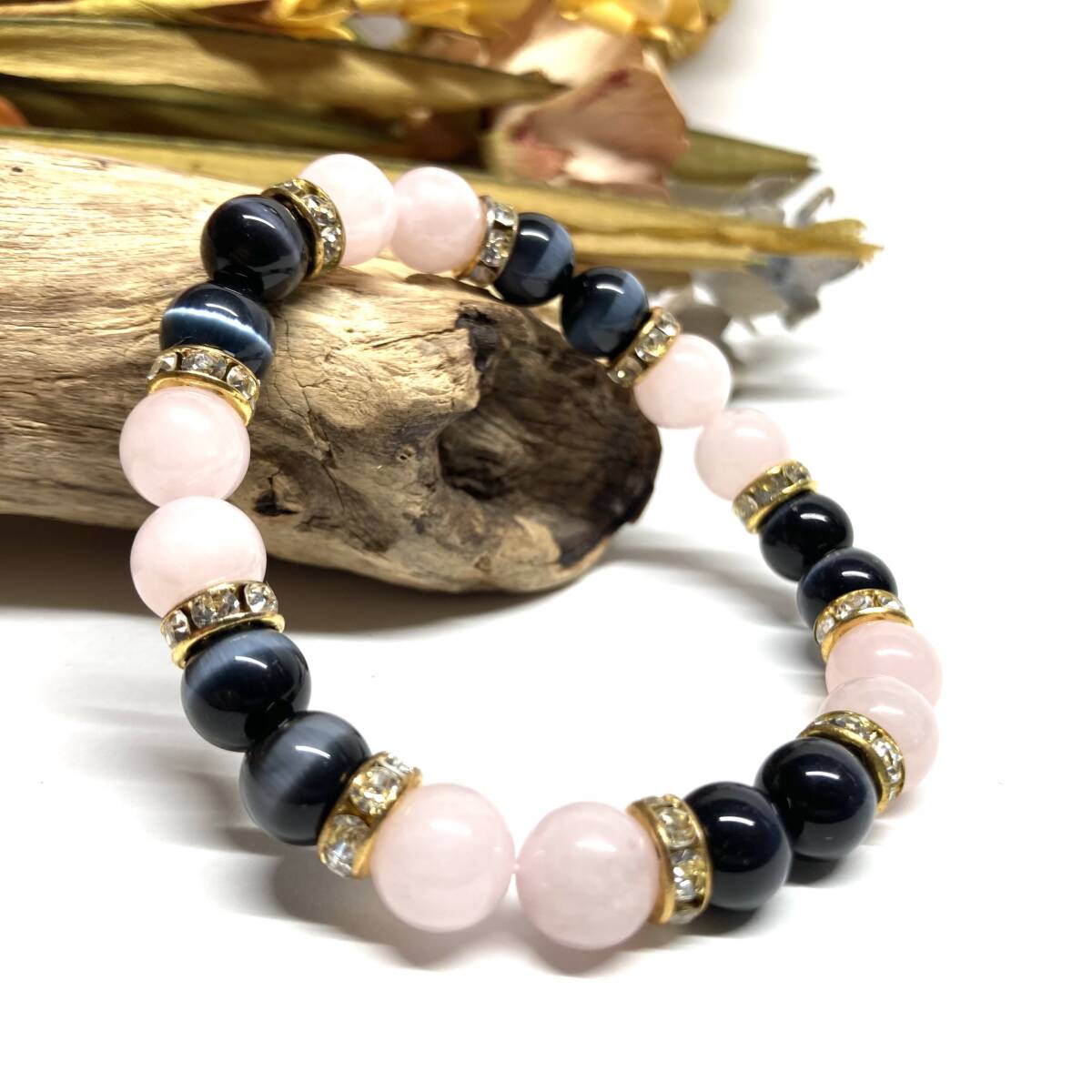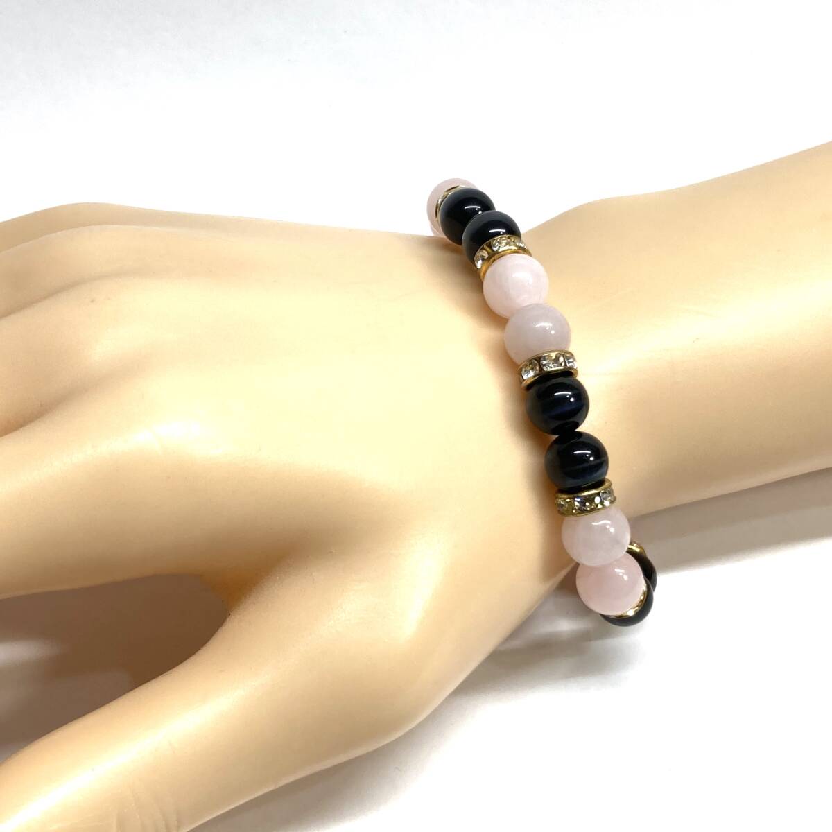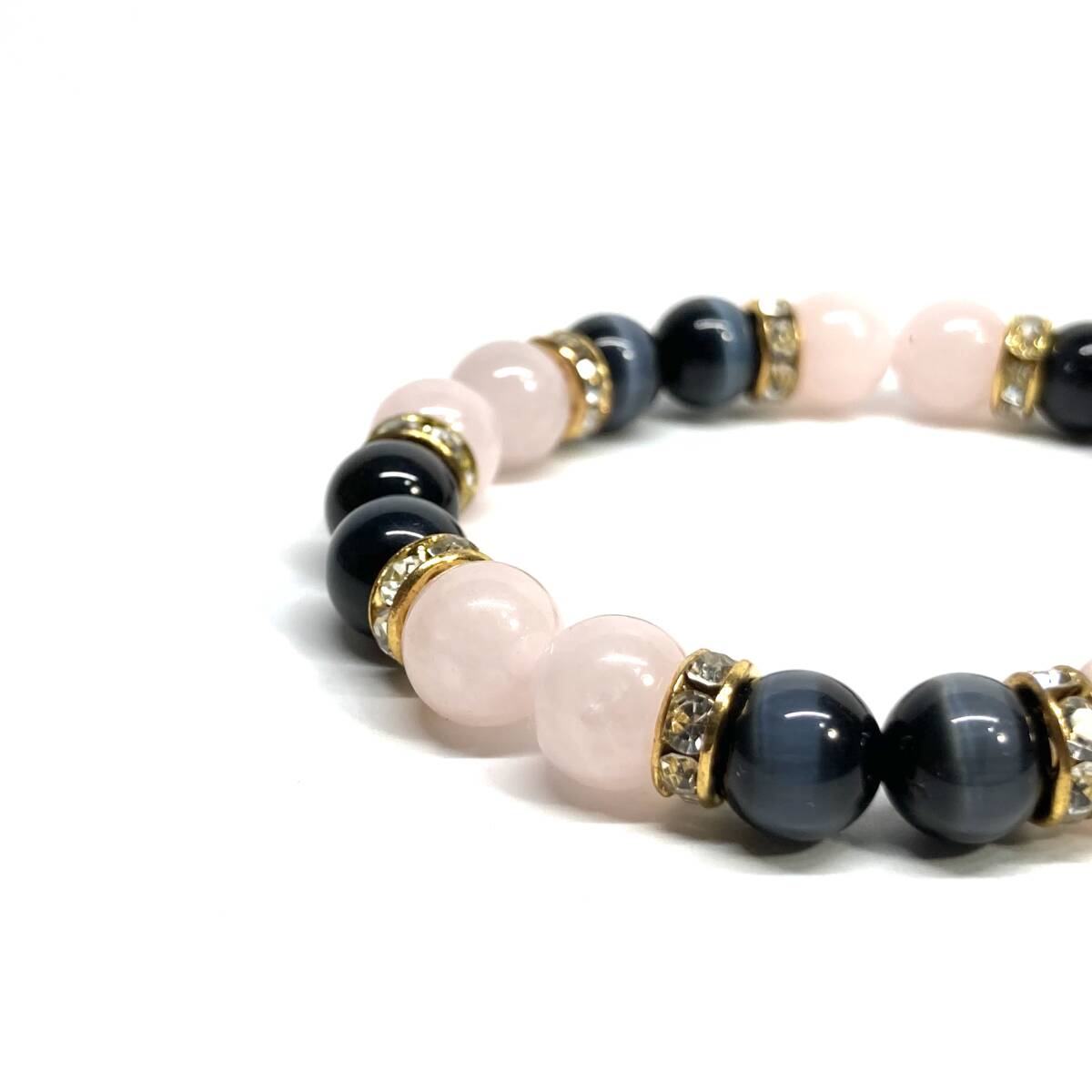 ローズクォーツ&キャッツアイ(ブラック) パワーストーン ブレスレット(ゴールド)レディース 女性 数珠 プレゼント