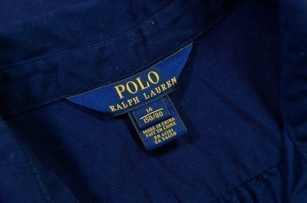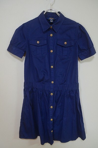 A2973/美品 春夏 POLO RALPH LAUREN ポロ ラルフローレン コットン 半袖 ミニ シャツワンピース チュニック 14 150/80濃紺/レディース