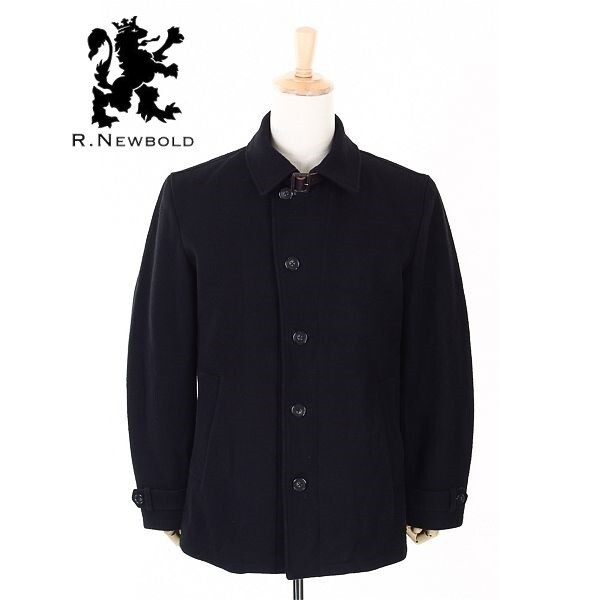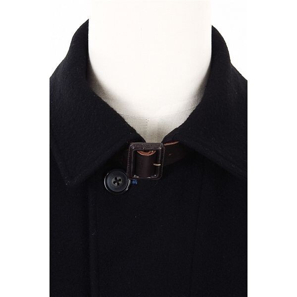 A5320/美品 秋冬 R.NEWBOLD アールニューボールド ポールスミス ウール 起毛 無地 襟ベルト ハーフ ステンカラーコート L2 黒/メンズ