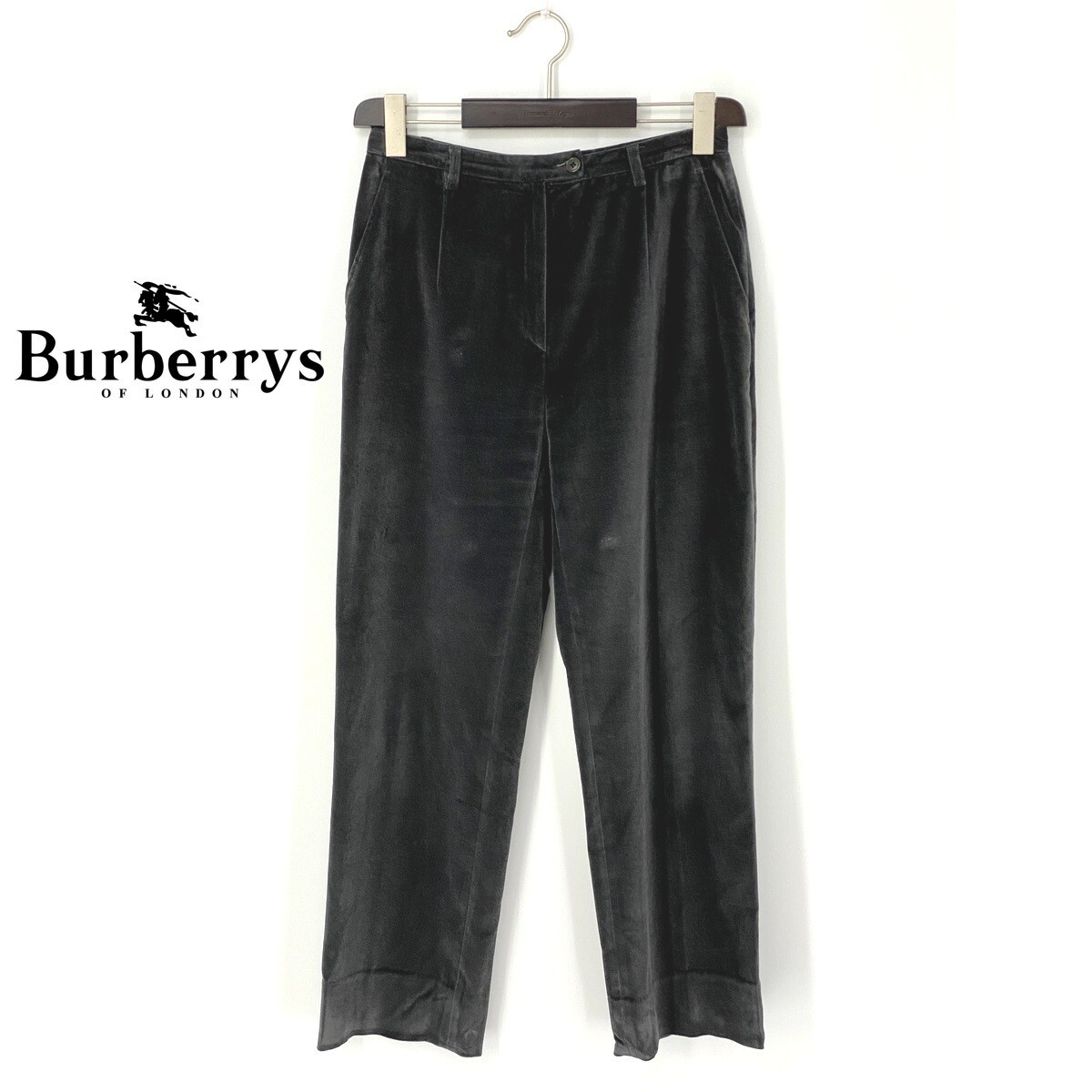 A7288/美品 春夏 BURBERRY バーバリー 光沢 ベロア ベルベット テーパード スラックス カジュアルパンツ トラウザーズM程 I42黒/レディース