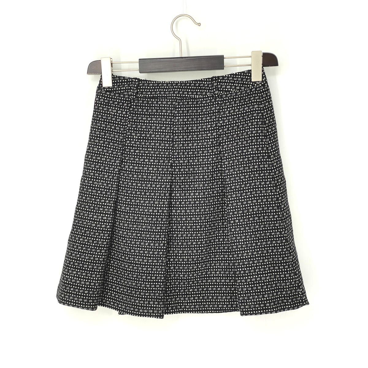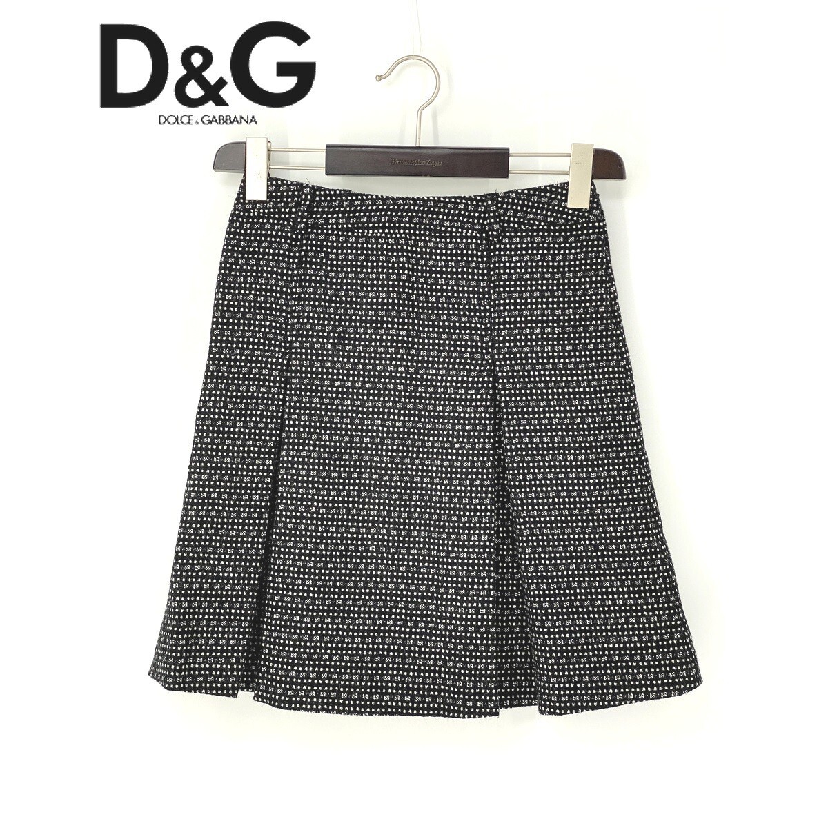 A7194/美品 春夏 DOLCE&GABBANA ドルチェ&ガッバーナ D&G ツイード 起毛 チェック フレア プリーツ ミニ 膝丈 スカート S程 黒/レディース