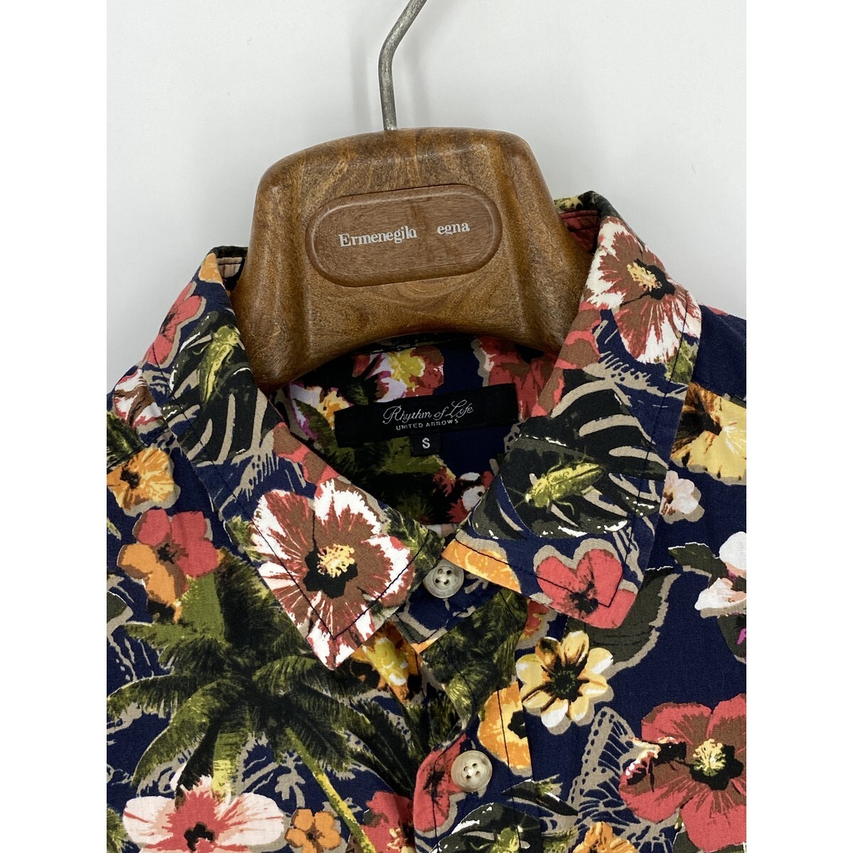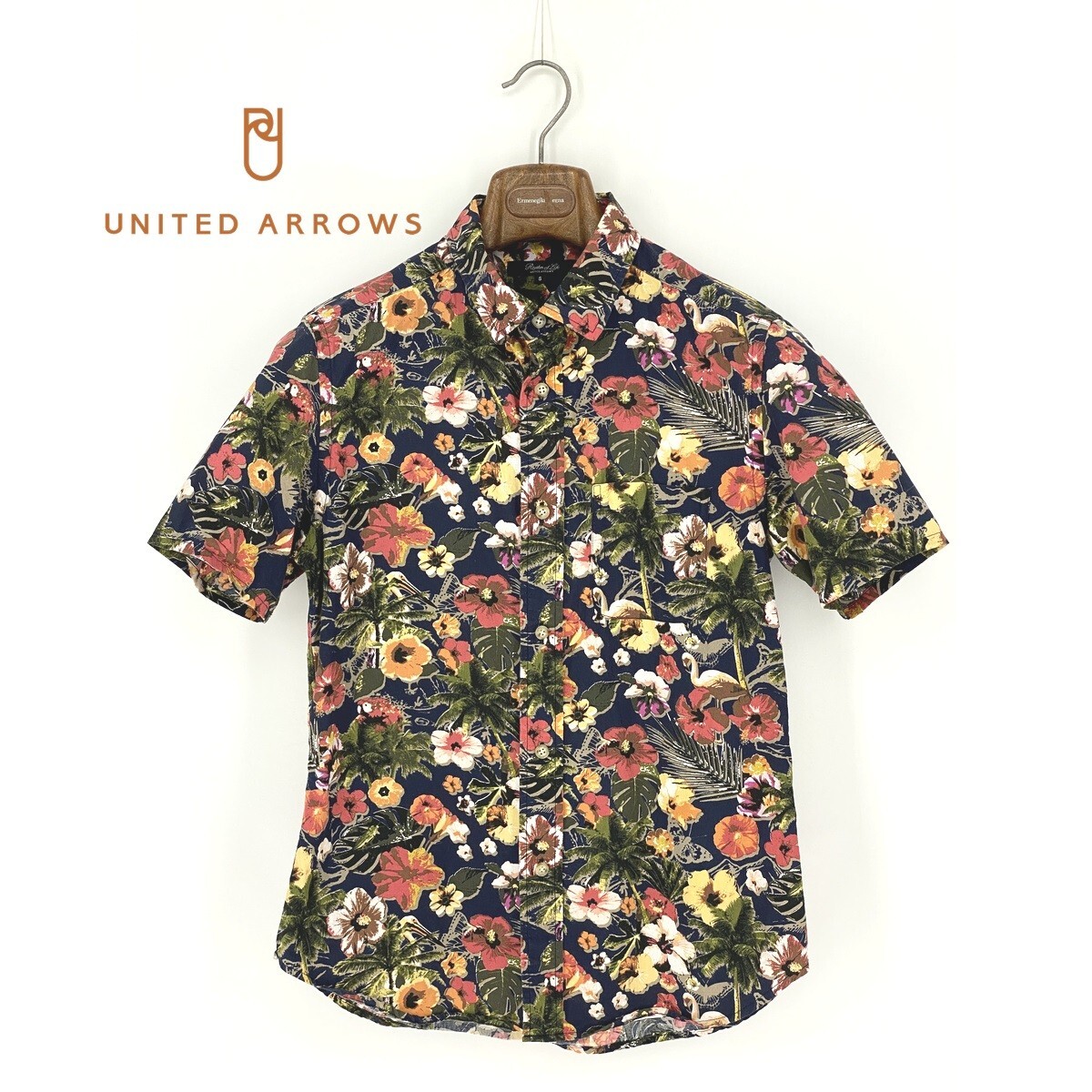 B0502/極美品 UNITED ARROWS ユナイテッドアローズ コットン 花柄 総柄 半袖 カジュアル ドレス アロハシャツ S マルチカラー メンズ