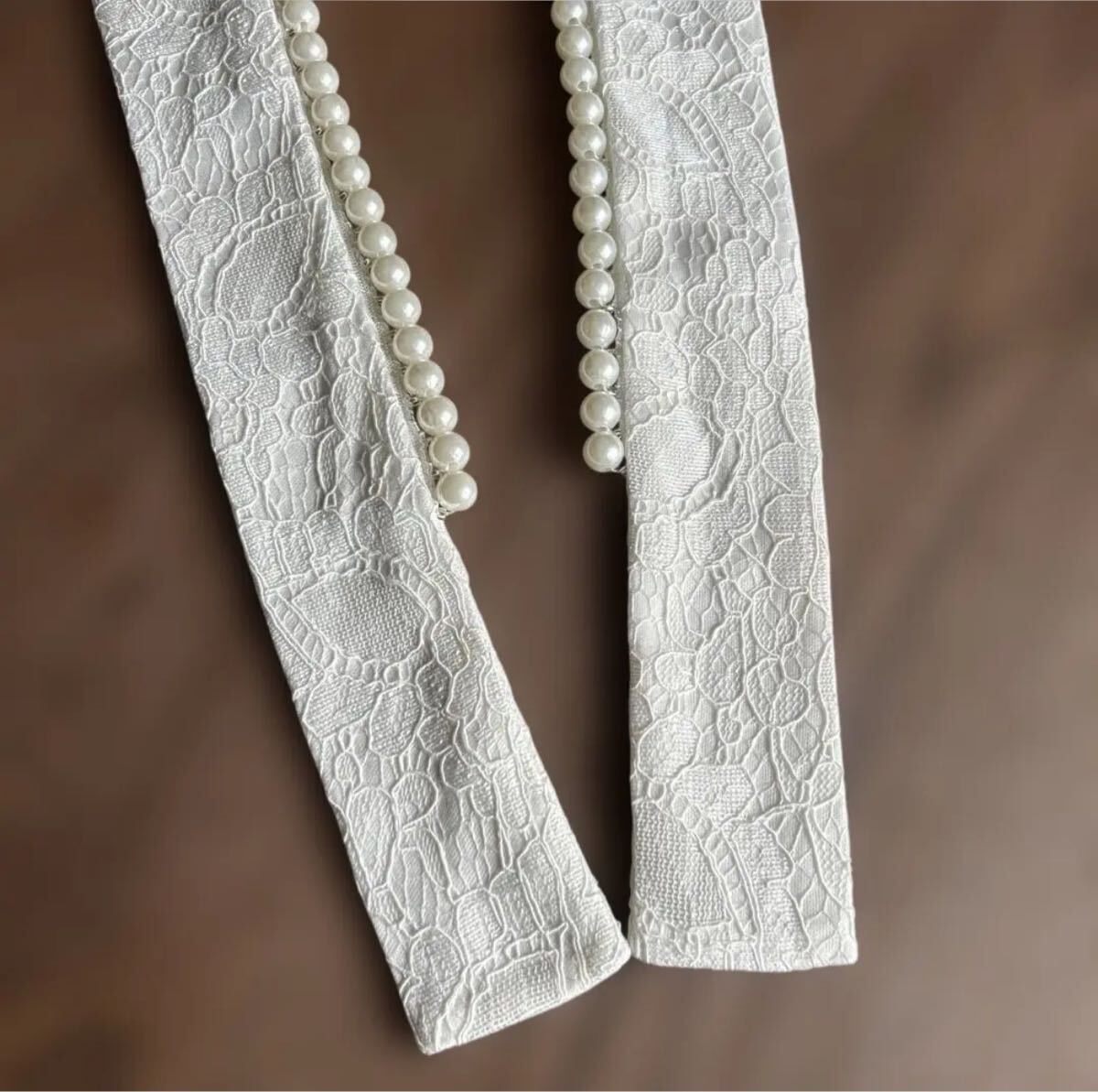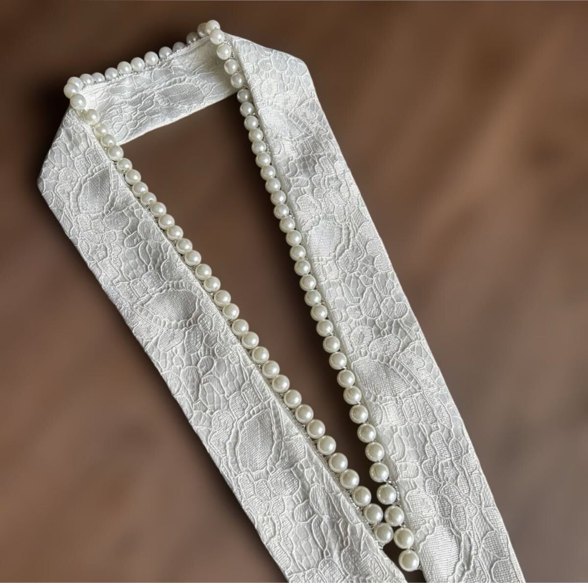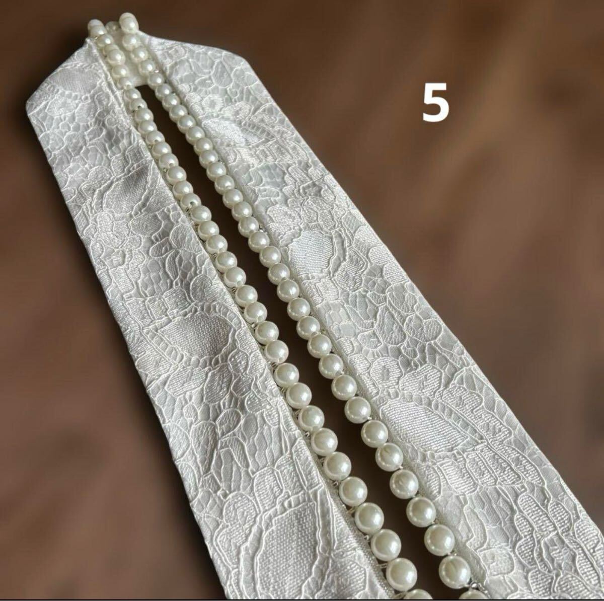 上品なパール装飾やレースが特徴で、和装スタイルに華やかなアクセントを加えます。