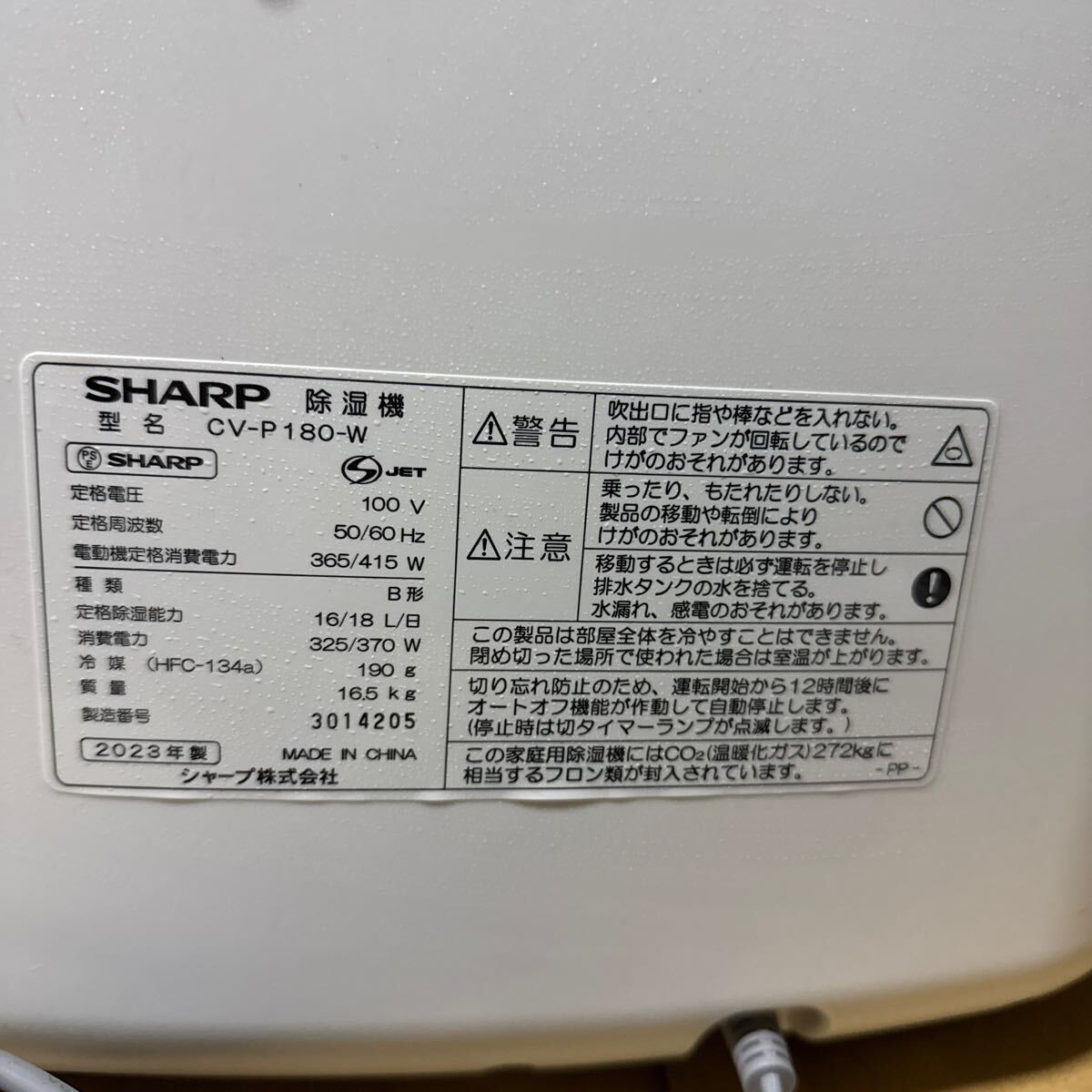 あ-8553)SHARP シャープ 除湿器 CV-P180-W 2023年製 通電のみ確認済