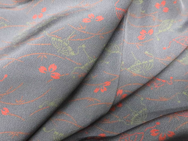 リサイクル商品ではございますが、大変良い状態のお品です。 地色はダークグレーです。 1枚目の画像が近いお色かと思われます。 素材は正絹です。 |