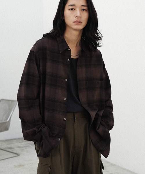 参考商品名:【WYM LIDNM】OMBRE CHECK LOOSE SHIRT