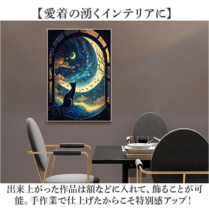 | 商品説明 | ・・【誰でもアーティスト気分を満喫】 ・自宅で気軽に、作品作りを楽しめる♪「ダイヤモンドアート」が新登場。 ・【初心者さんでも安心◎シンプル設計】 ・ペン先にのりを付けカラービーズを取り、粘着性のある台紙に貼り付け。軽くプレスすれば完成! ・【決められた色のビーズをON】 ・台紙には英数字などが印刷されており、対応するビーズを1つ1つ貼り付けるだけの簡単工程。 ・【愛着の湧くインテリアに】 ・出来上がった作品は額などに入れて、飾ることが可能。手作業で仕上げたからこそ特別感アップ! ・【何かに没頭したい時におすすめ】 ・無心で作業できるダイヤモンドアート。時間を忘れて何かに熱中したい時や気分転換にぴったり。 ・【空間にアクセントをプラス】 ・白い壁に映える!月を眺めるネコデザイン!ビーズの形は丸と四角の2タイプ。 |