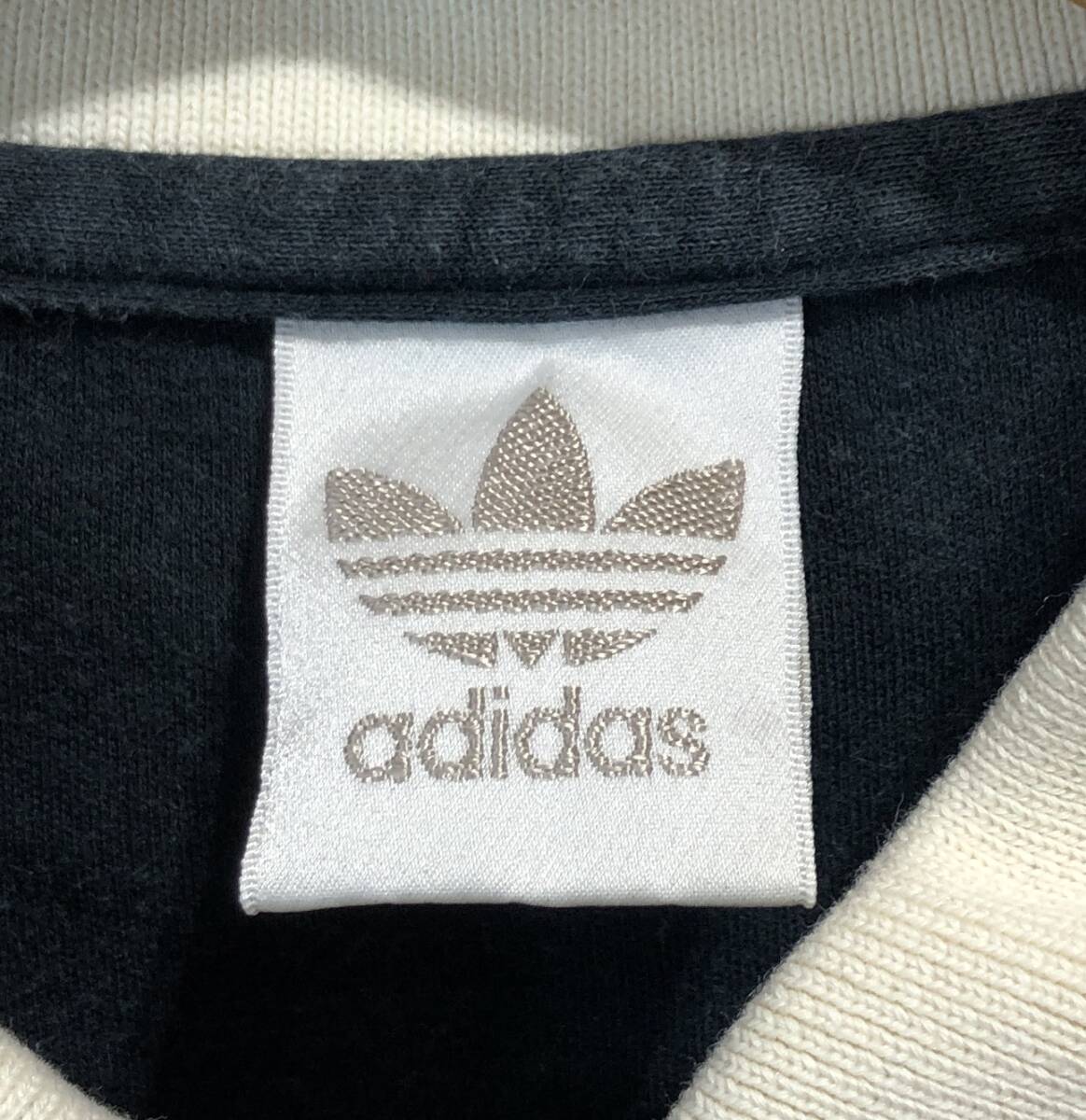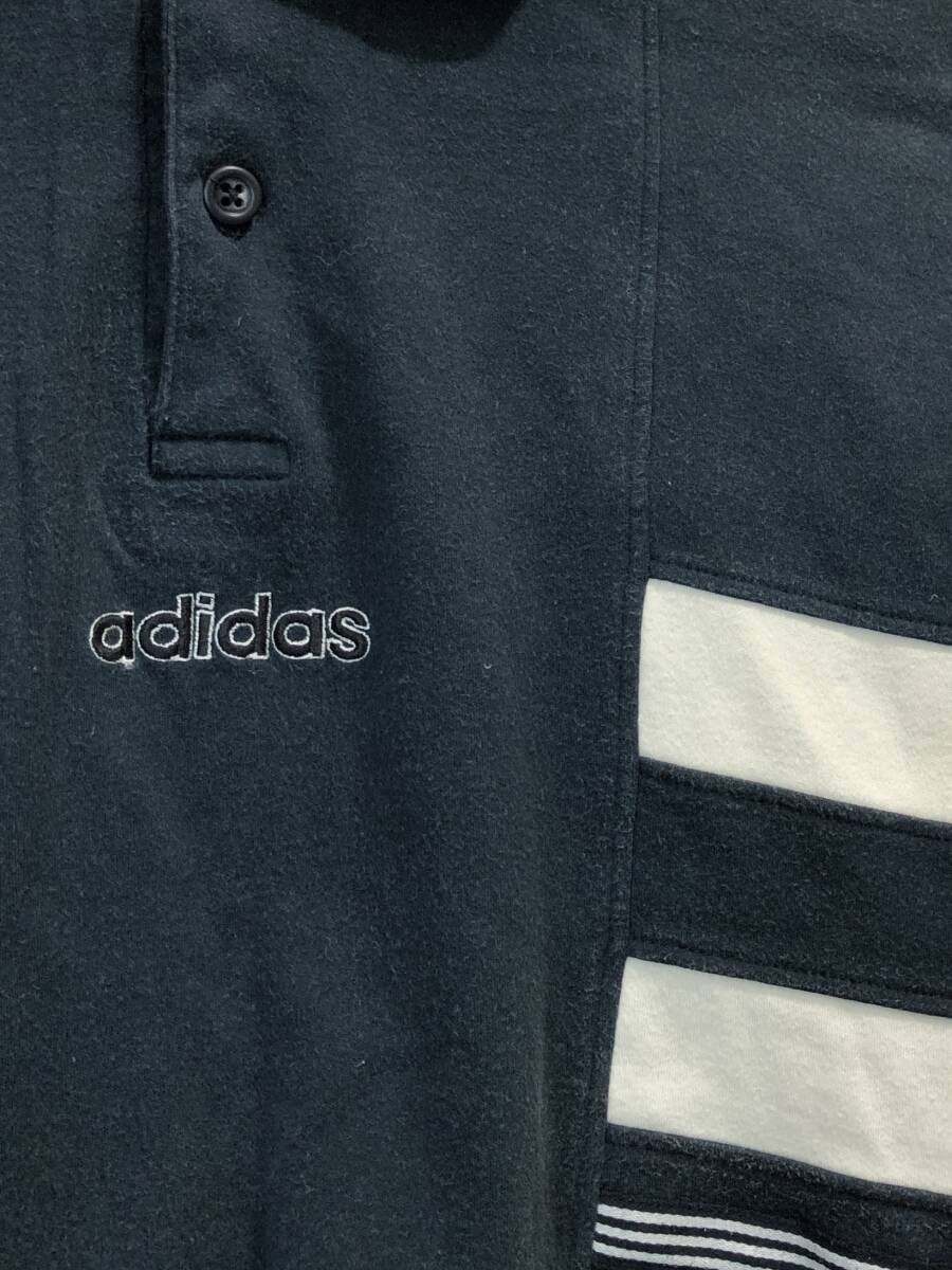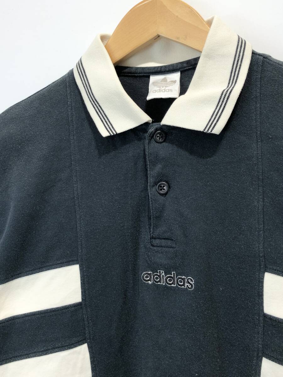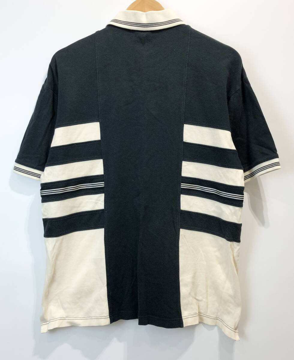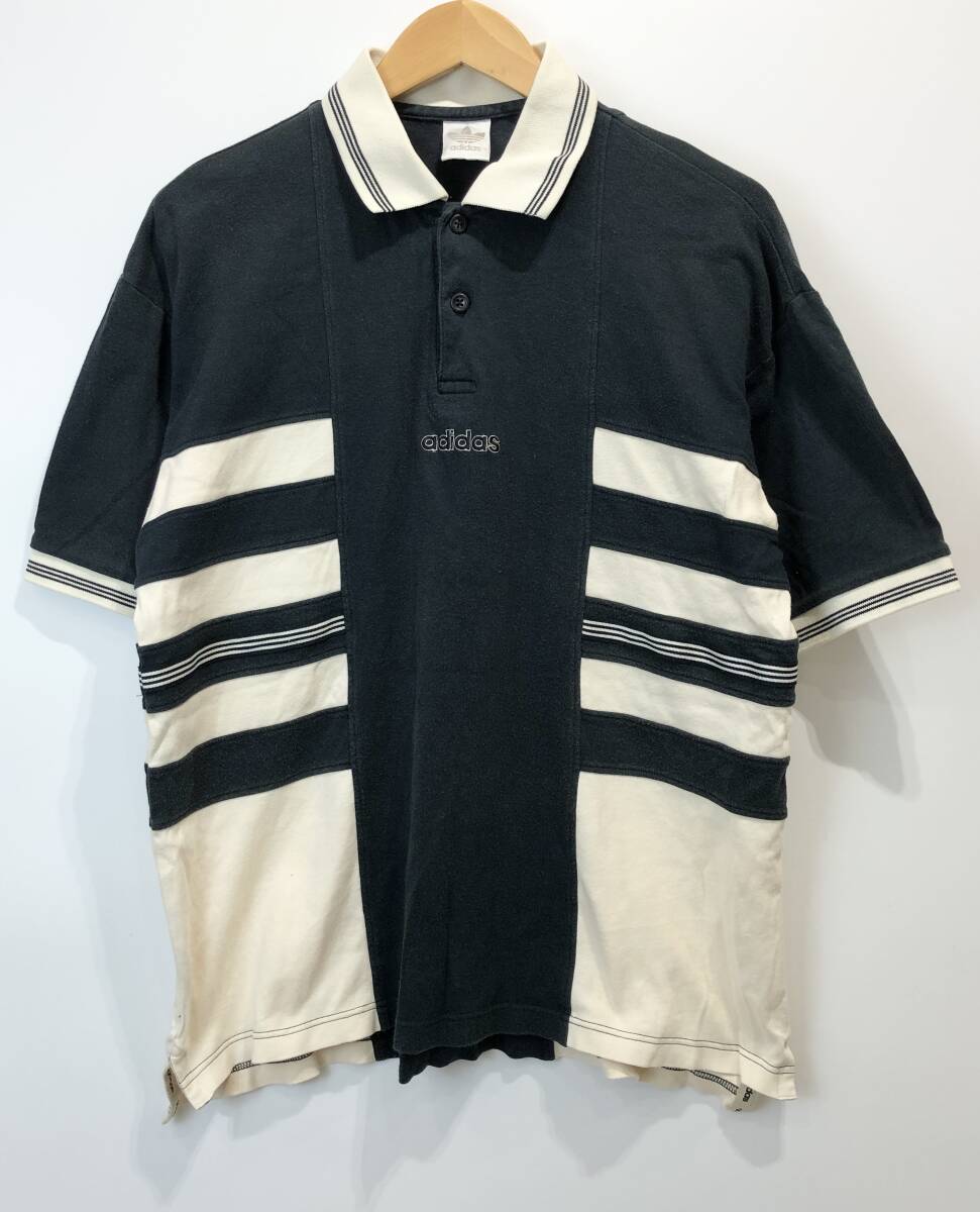 デサント社製 90s adidas ポロシャツ ショートスリーブ ロゴ 刺繍 ブラック ホワイト AA-7481 アディダス 古着 ヴィンテージ SIZE:M-L■1120C |
