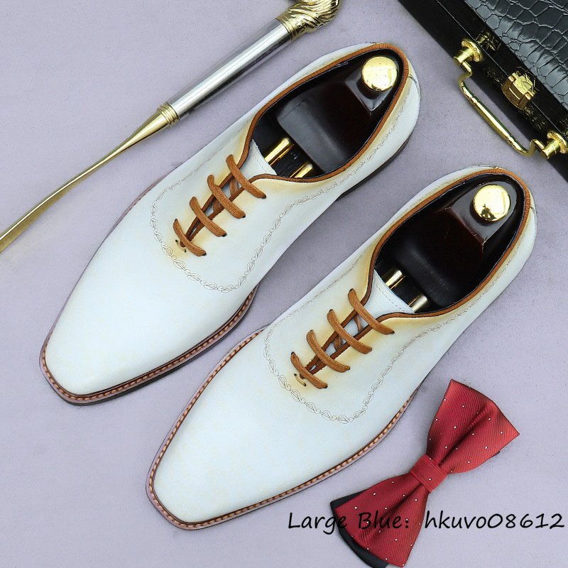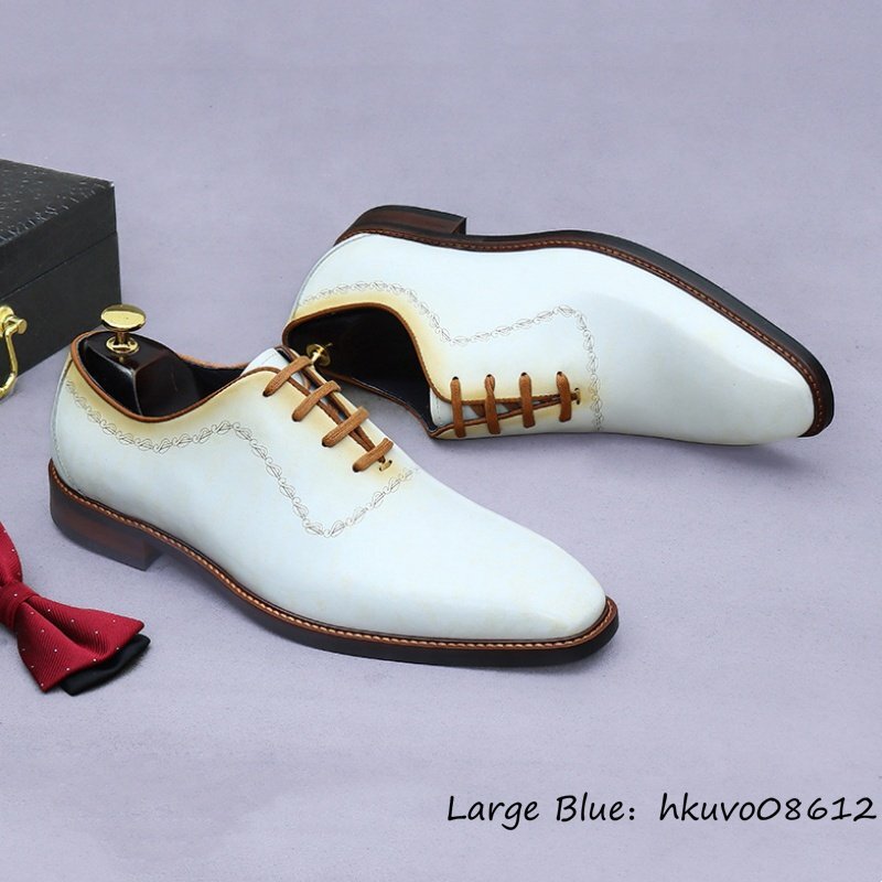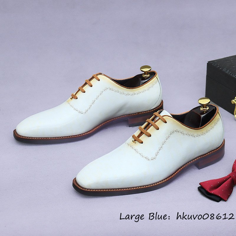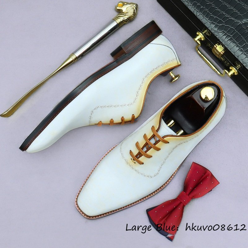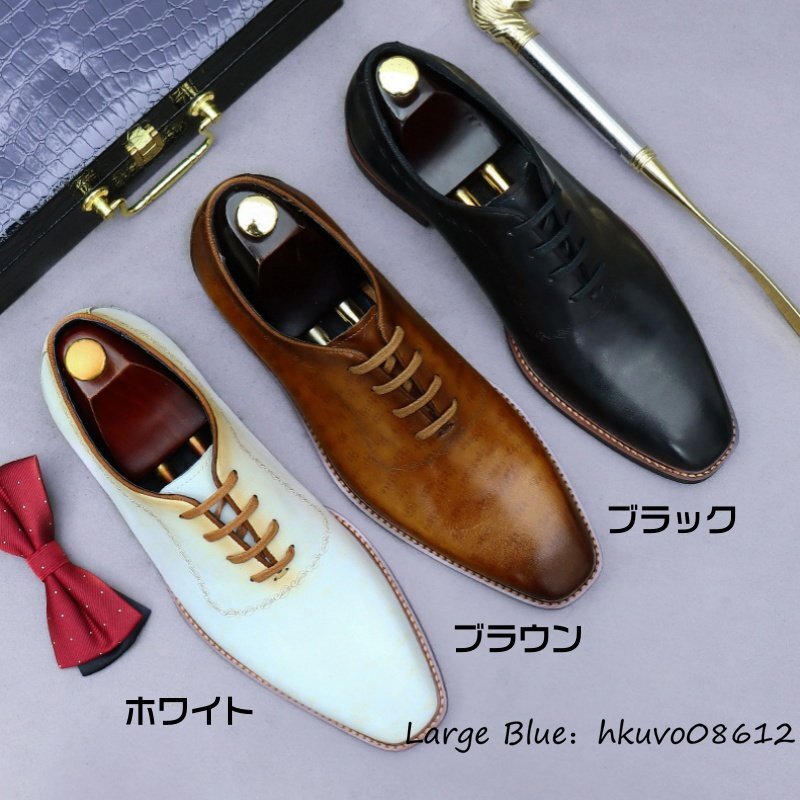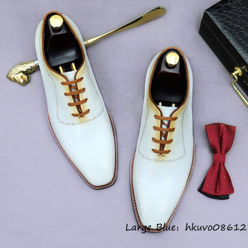 超希少★ビジネスシューズ 本革 メンズ 職人手作り 手塗り上げ 彫り レザーシューズ 牛革 革靴 紳士靴 結婚式 フォーマル ホワイト 27.5cm