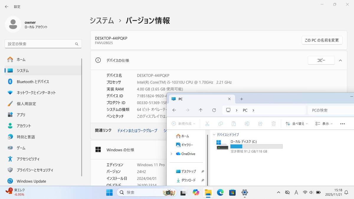 | OS | Windows 11 Pro 64ビット版 | ||||||||||||||||||||||||||||||