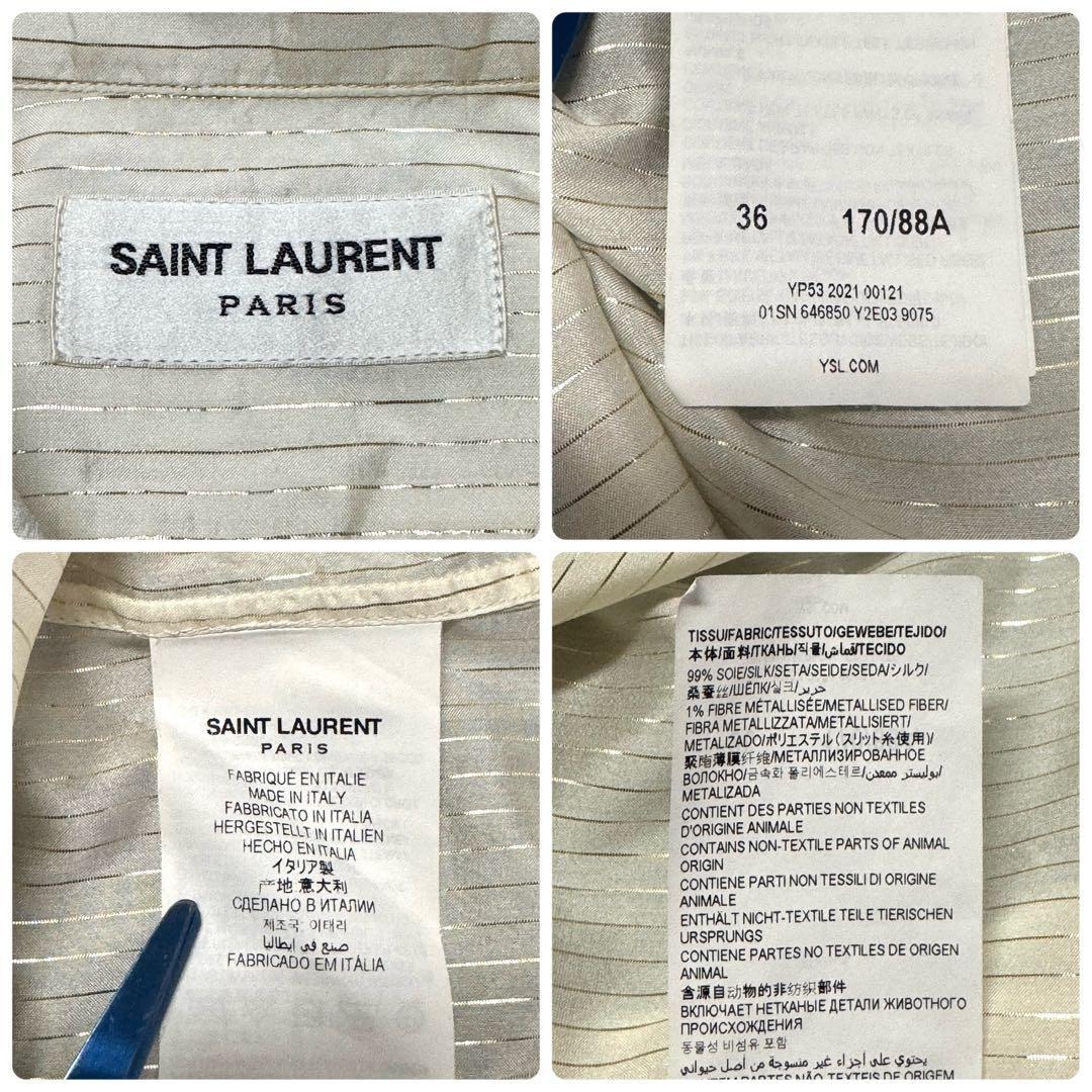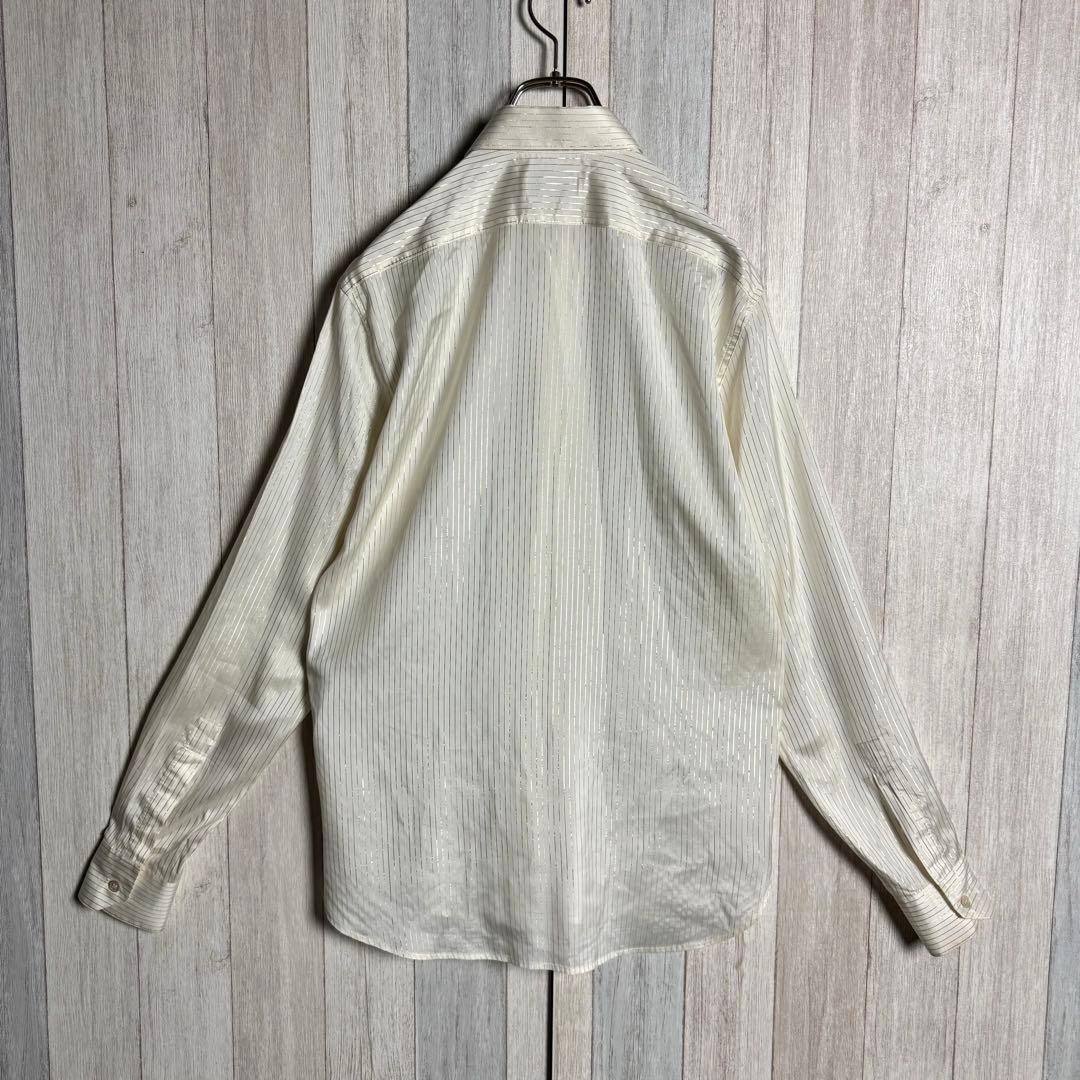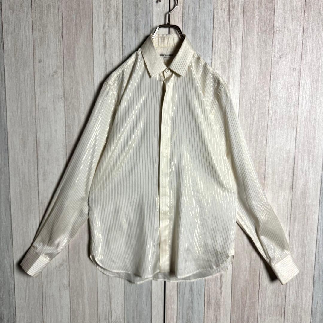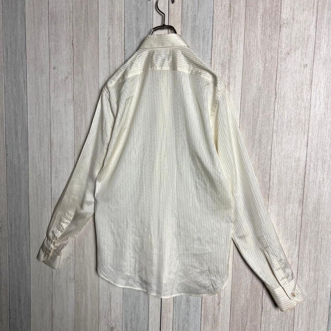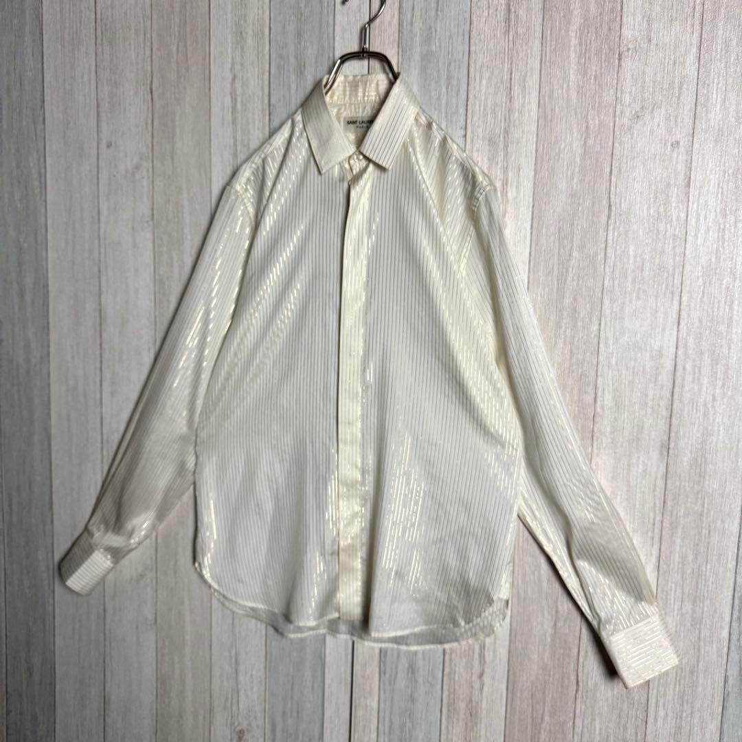 【未使用級・極美品・シルク】イタリア製 SAINT LAURENT PARIS サンローラン ゴールドストライプ L/S・長袖 シャツ アイボリー 36 M相当