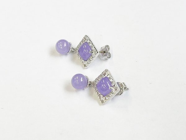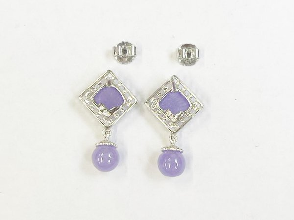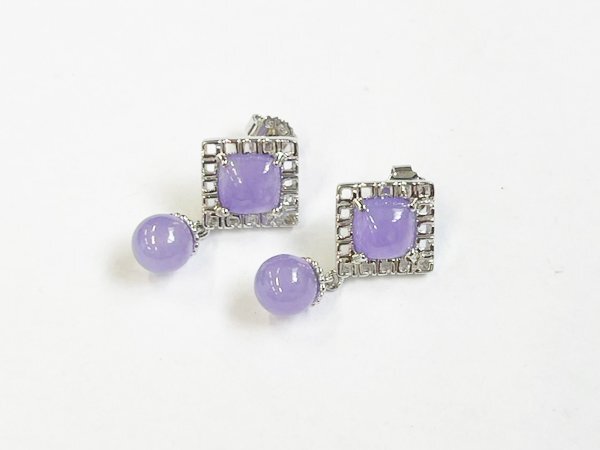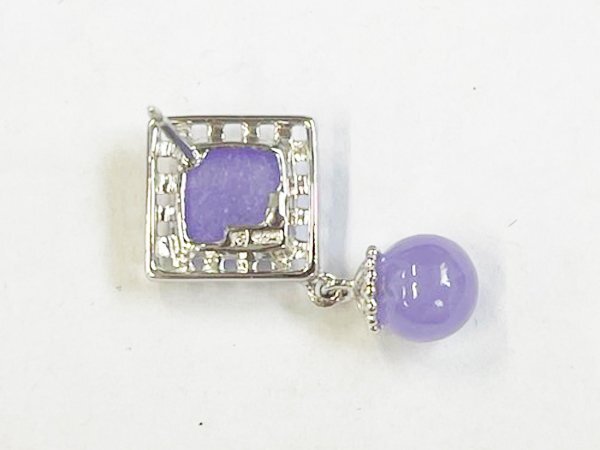 ピアス 925 silver 宝石 ストーン スクエア ドロップ モチーフ スイング デザイン シンプル ラベンダー/シルバー×パープル/1円スタート/AY