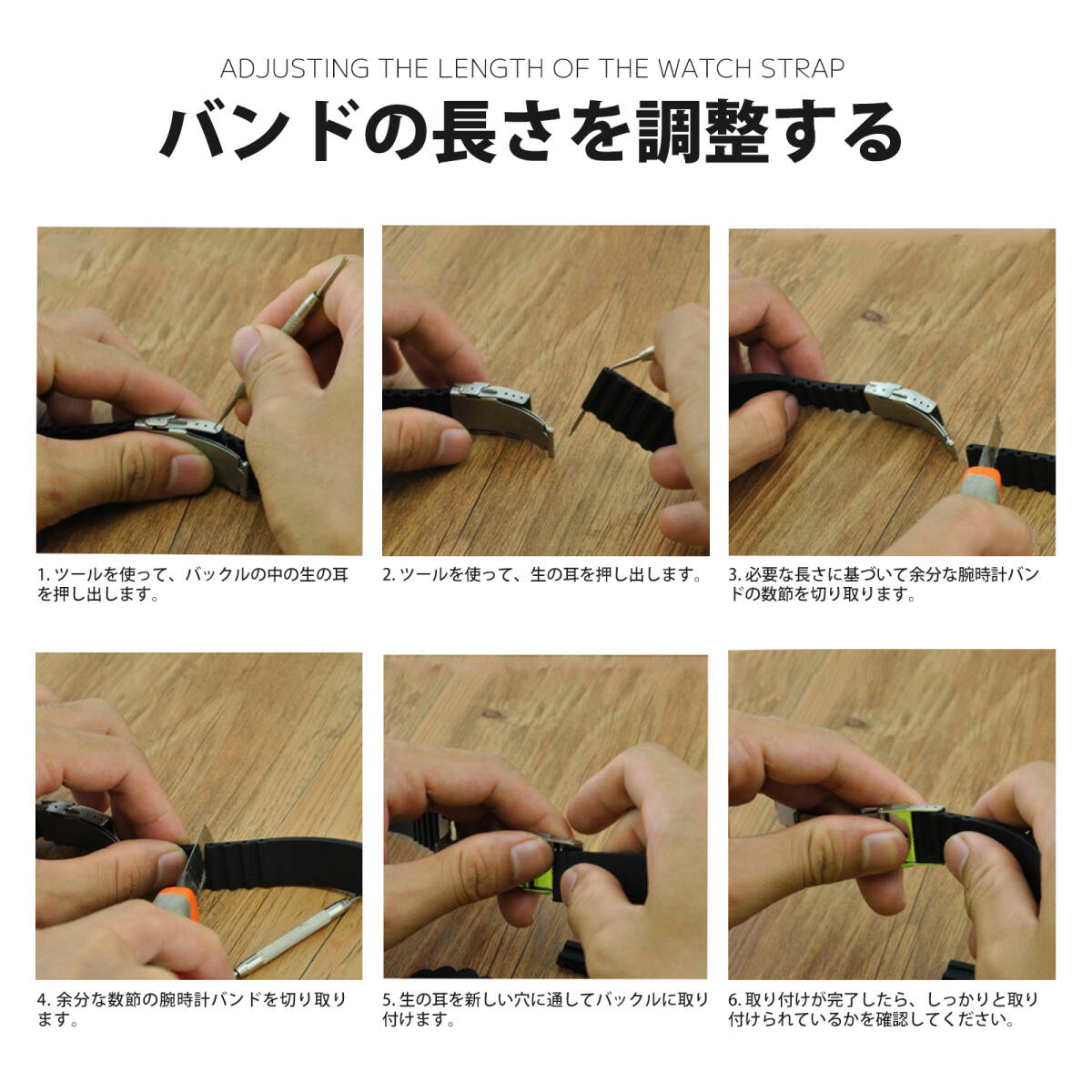 | 特徴 | 1.柔らかく快適で、手を傷つけない。 2.防水性と耐熱性、着用時安定。 3.精選した高品質材料で、丈夫で壊れにくい。 4.自由に取り外し、手首のサイズに適応。 |