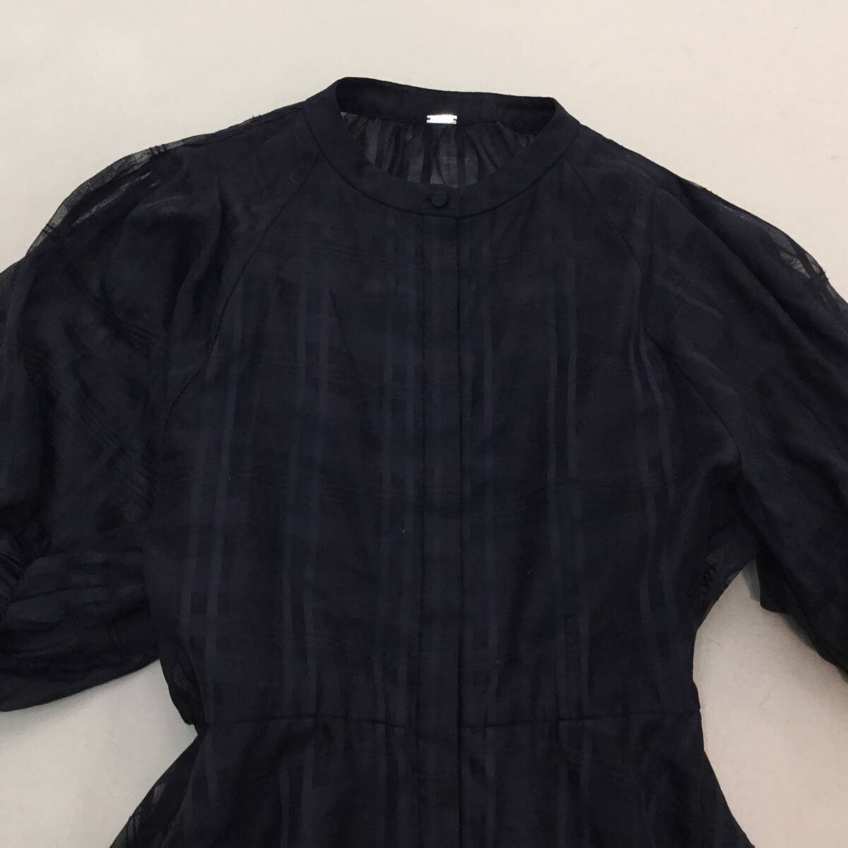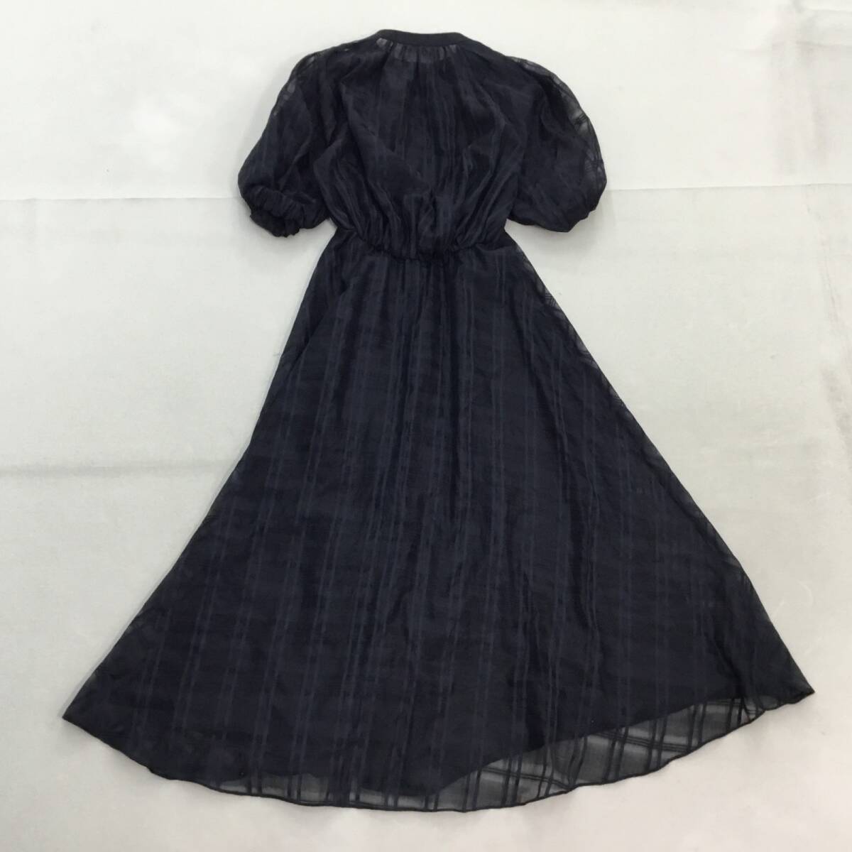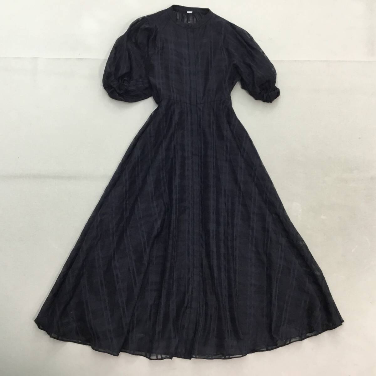 ■Mila Owen ミラ オーウェン ロング シアーワンピース フレアワンピース 半袖 ブラック サイズ0 レディース ポリ チェック 0.32kg