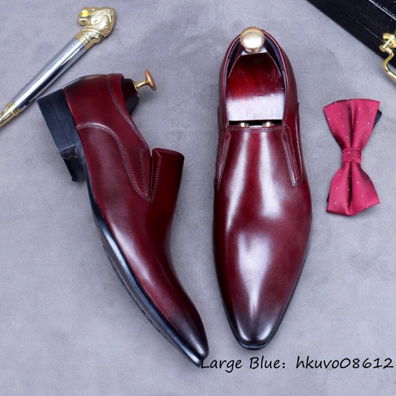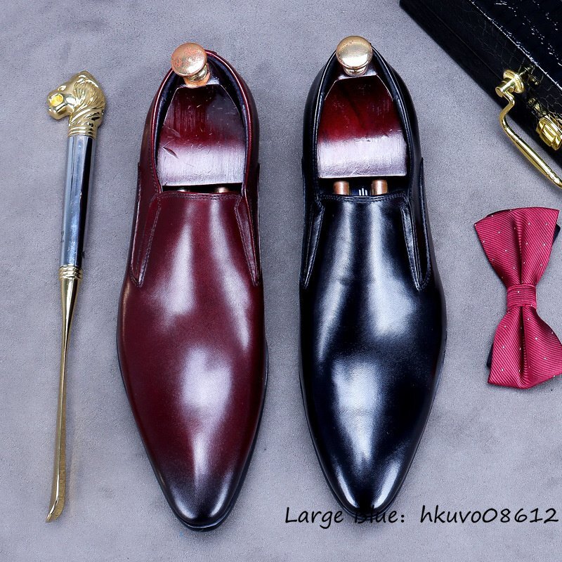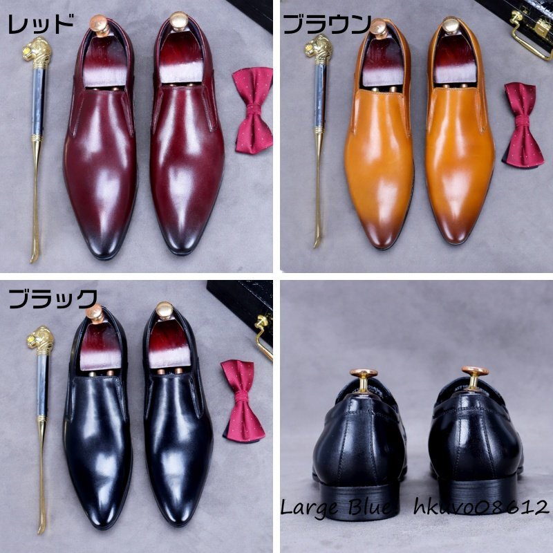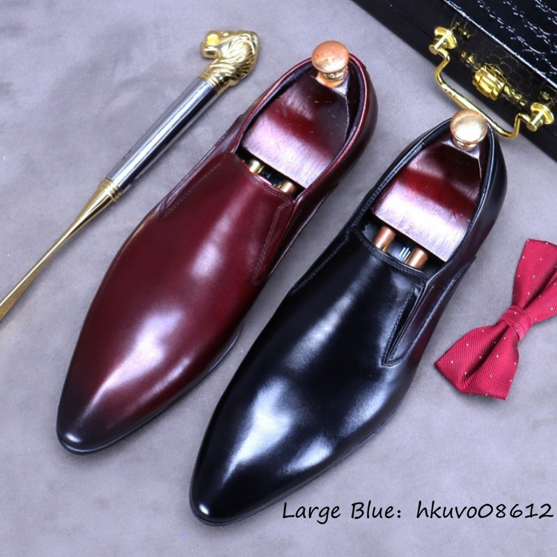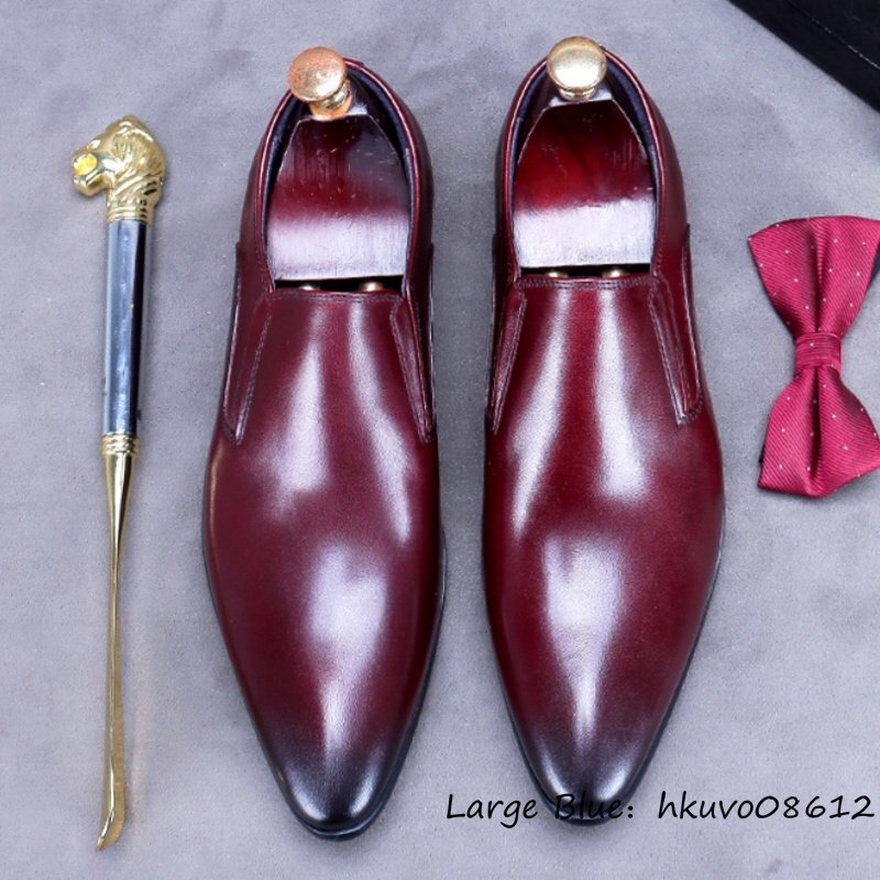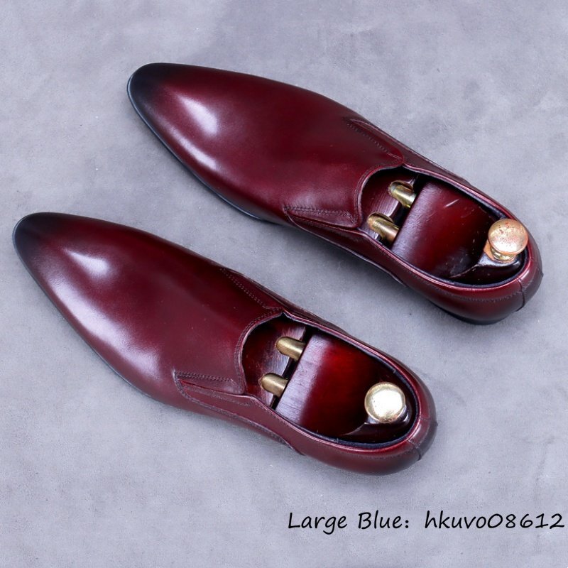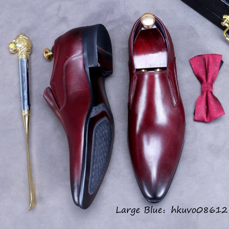 定価10万◆最高級 ビジネスシューズ ハンドメイド 職人手塗り上げ 本革 レザーシューズ 紳士靴 革靴 高級牛革 フォーマル レッド 27.5cm