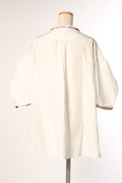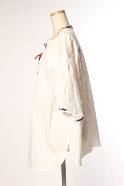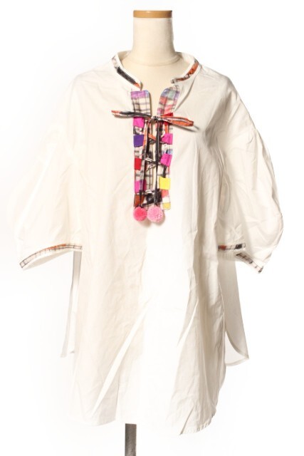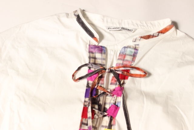 ツモリチサト TSUMORI CHISATO ブラウス ノーカラー レースアップ 半袖 リボン 2 白 ホワイト /hk0504 レディース