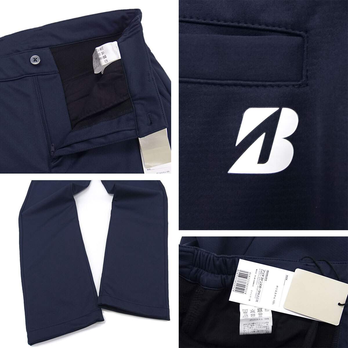 新品・未使用【BRIDGESTONE GOLF(ブリヂストン ゴルフ)】秋冬 2025年製 裏起毛フリース 防風 防寒パンツ(ウィンドパンツ/ウォーマーパンツ/スラックス)(タグ付き)。 国内正規品。トップスポーツブランドならではの機能性・耐久性・快適な着心地を兼ね備えたゴルフラインの裏起毛フリース防寒パンツ。厚手できめ細やかな生地は風を通さず、肌触り抜群の裏起毛でとてもあたたか。優れたストレッチ生地、かつウエストはゴム入りで約12cm程度も伸縮し快適にフィット。ゴルフラインの防風パンツですが、ベーシックかつシンプルなデザインで各種のアクティブなシーンからカジュアルなスタイル、ビジネスカジュアル等にもご活用いただけるのが、おすすめのポイント。ブリヂストンのロゴもヒップポケット上にさりげなく描かれています。ウォッシャブル ご家庭の洗濯機で洗濯ができます。(プライスタグには「オープンプライス」と表示されていますが、大手ゴルフショップ「ヴィクトリアゴルフ(ゼビオ)」等ではシーズン当初に税込13,200円で販売されていた品です。)どうぞお見逃し無く。