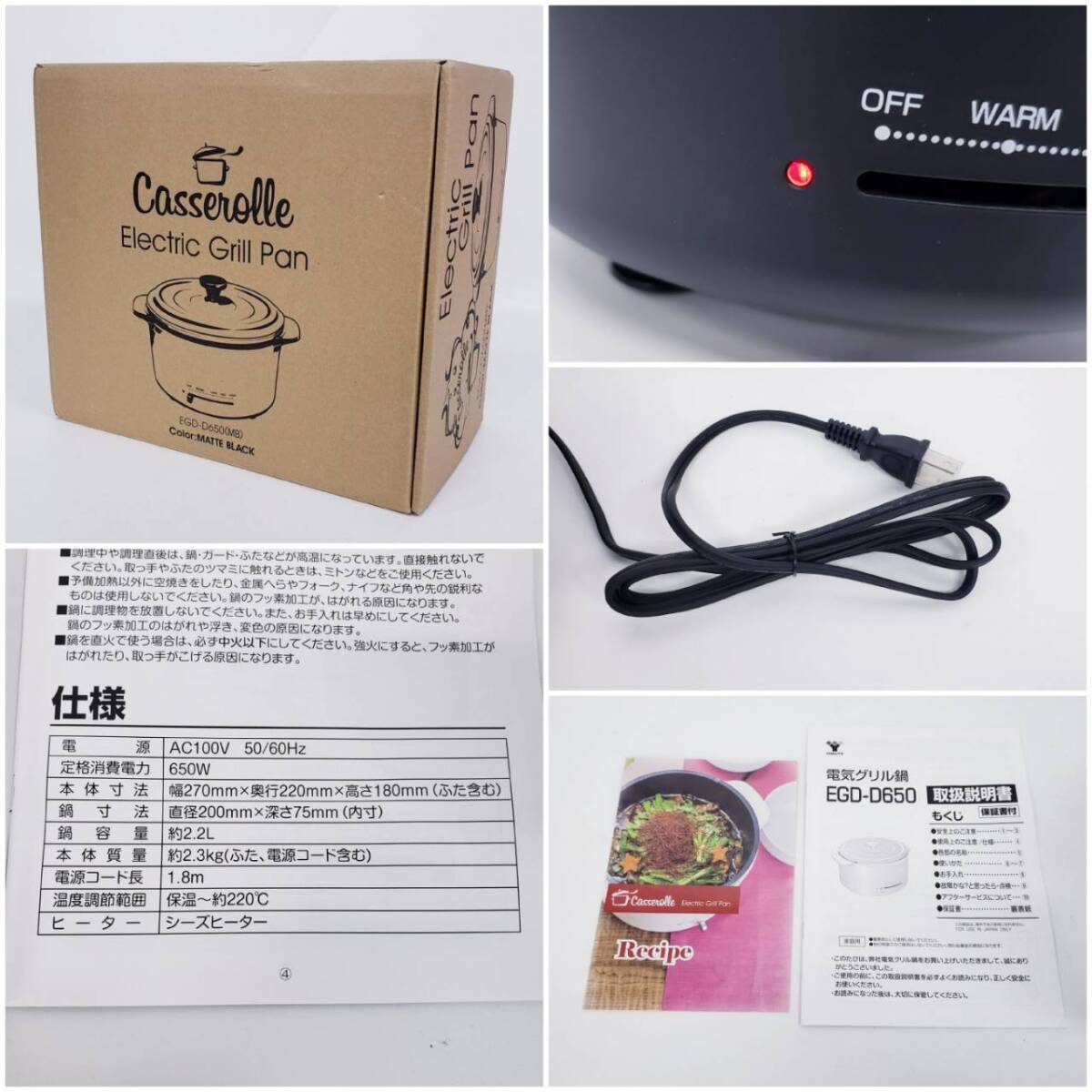 商品名:電気グリル鍋 ブランド:山善 型 番:EGD-D650(マットブラック) 年 式:不明 付属品:箱・印刷物・説明書 サイズ :画像にてご確認下さい。 ※若干の誤差がある場合がございます。 状態について ランク 【A】 わずかにキズ・汚れがありますが、全体的に状態の良い商品です。 コメント ・本体に目立つ傷は無く、綺麗な状態です。 ・通電のみ確認出来ましたが、その他の動作、機能は未確認です。 ・箱に梱包資材を巻いて発送します。ご了承の上、ご入札下さい。 ───────────────[ 状態ランク表 ]──────────────── 【N】 新品・未使用品の新古品です。 【S】 キズ・汚れがほとんど見受けられず、非常に状態の良い商品です。 【A】 わずかにキズ・汚れがありますが、全体的に状態の良い商品です。 【B】 キズ・汚れなど、使用感が見受けられますが、 中古品としては比較的良好な状態です。 【C】 キズ・汚れ・型崩れなどの目立つ使用感がありますが、 ご使用には問題のない商品です。 【D】 通電の確認はできておりますが、稼働や動作の確認は行っておりません。 【E】 破損や欠損などが見受けられる商品ですが、 素材やパーツとしての価値があり、リメイクや部品取りにおすすめの商品です。 ※ランクは社内基準です。 ──────────────────────────────────────── 送付方法 ゆうパック 100 サイズ 着払い 送料はページの一番下の表を参照ください ※千葉市稲毛区からの発送となります。 ※出品時に商品を梱包しているため、基本的に※「同梱不可」となります。 ※こちらの商品は発送のみの対応となります 防犯上の観点から、 【引取り限定】【家財便または引き取り】の商品以外は 従業員の安全の為、直接の引取りはお断り致します。 | |||